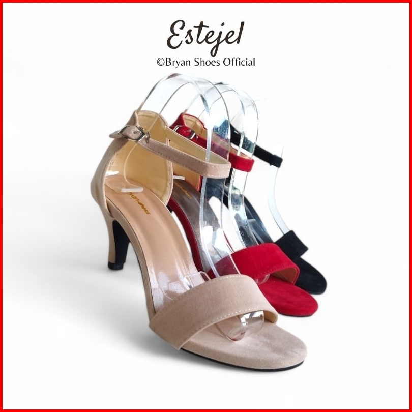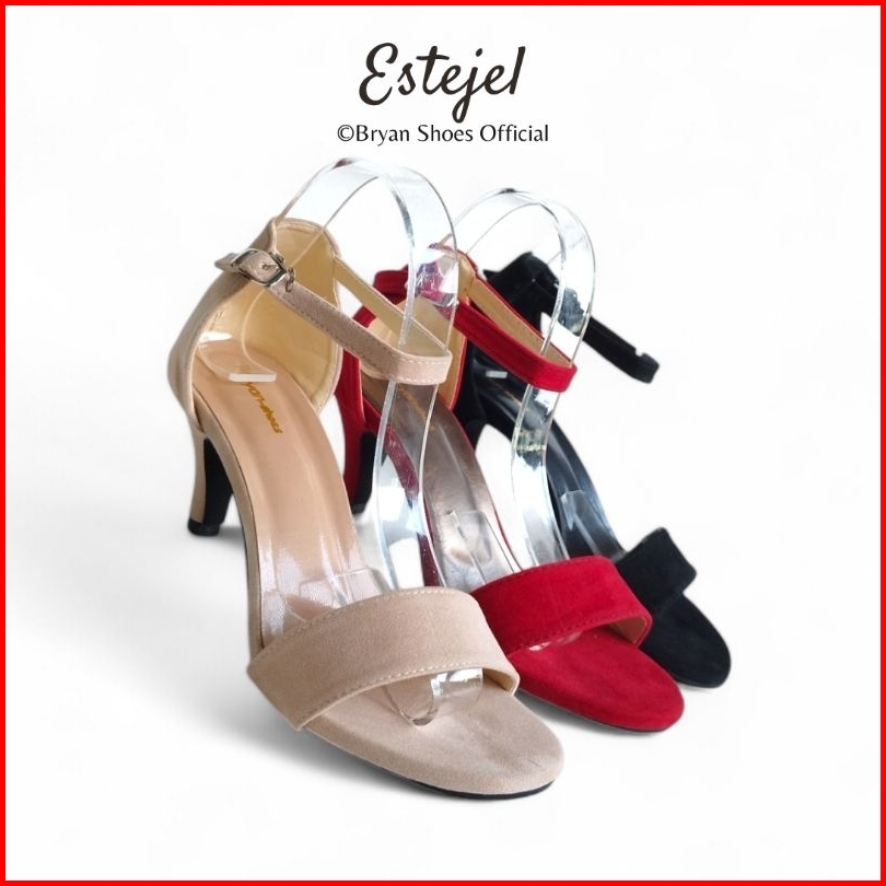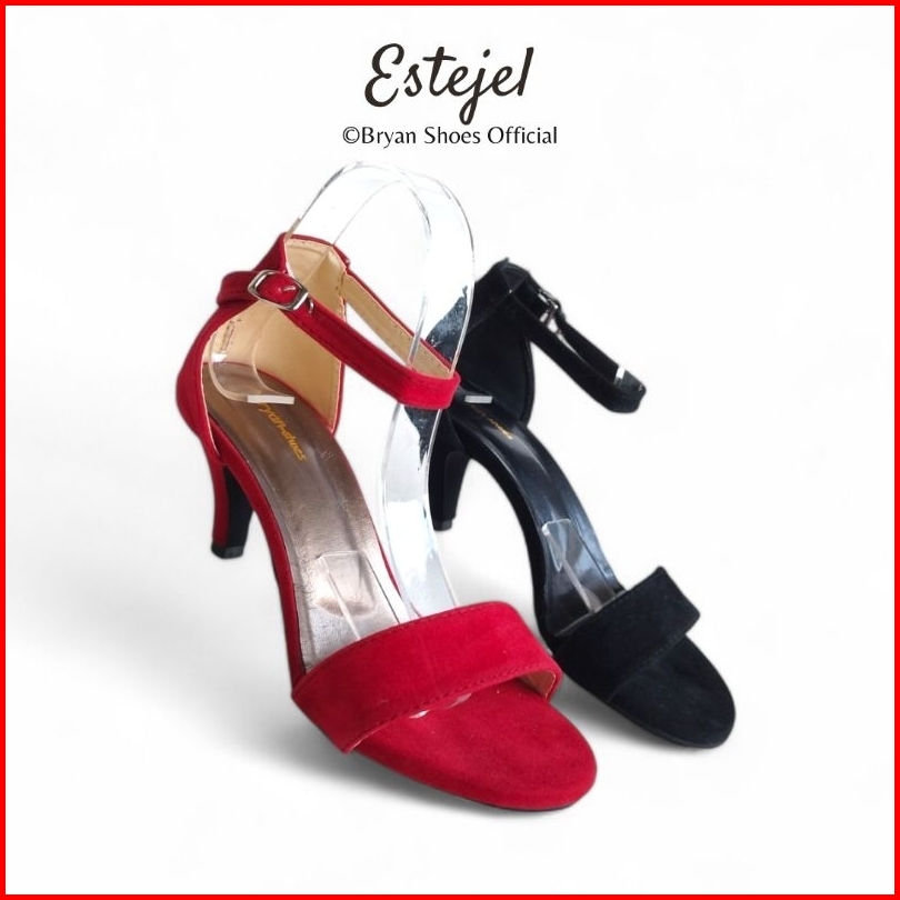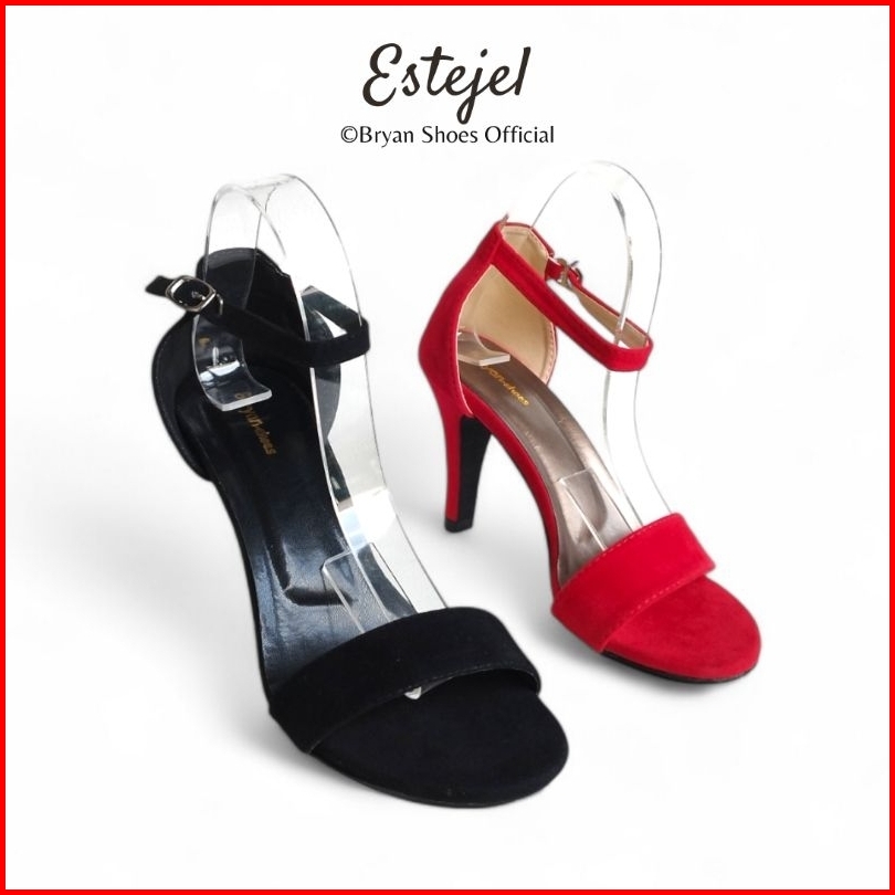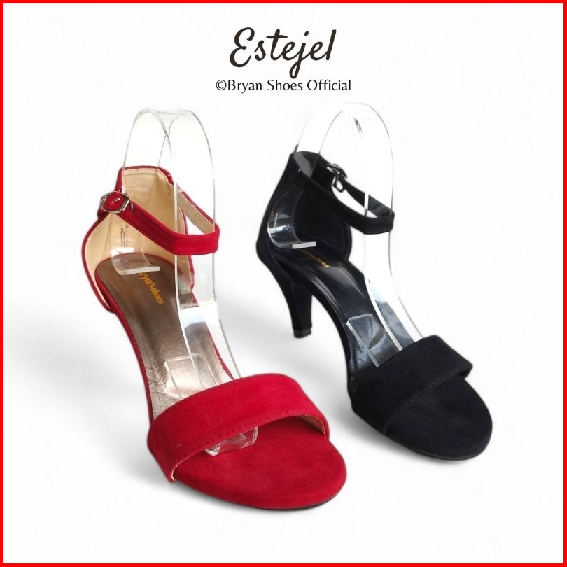 Sepatu High Heels Wanita Suede Jumbo 36-43 Hitam Merah Hak Tinggi Runcing 5cm 9cm Bryan Estejel