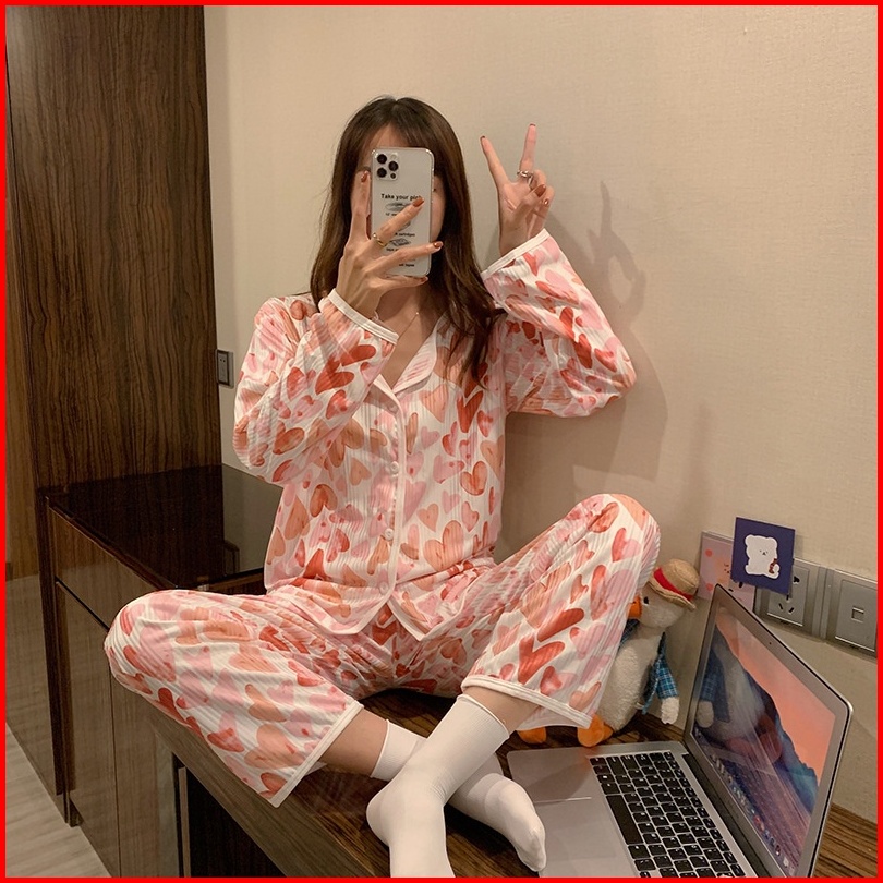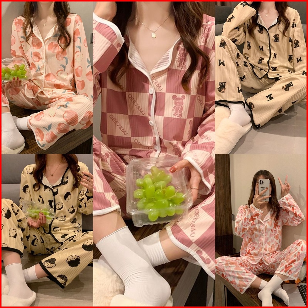Lovera Baju Tidur Wanita Piyama Busui Kancing Depan Pp Lengan Panjang Celana Panjang