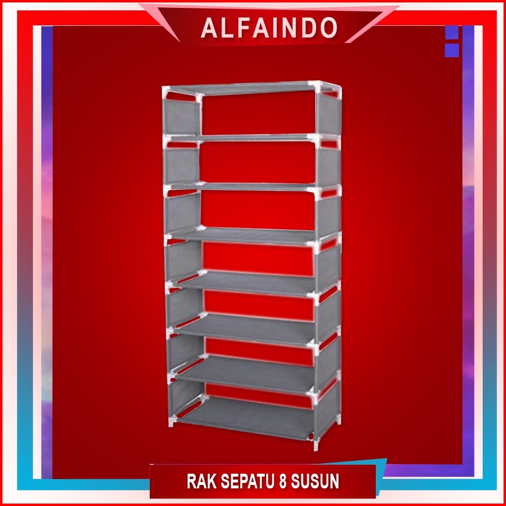 Alfaindo Rak Sepatu Portable Susun 8 Rangka Besi Rs017 Murah Kuat Praktis