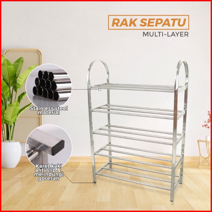 Rak Sepatu Stainless Anti Karat 5 4 3 Susun