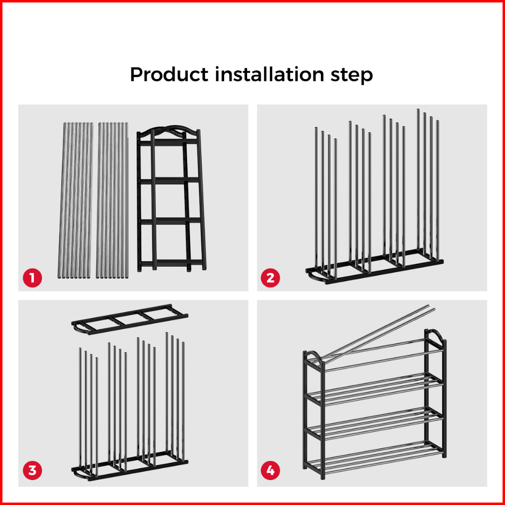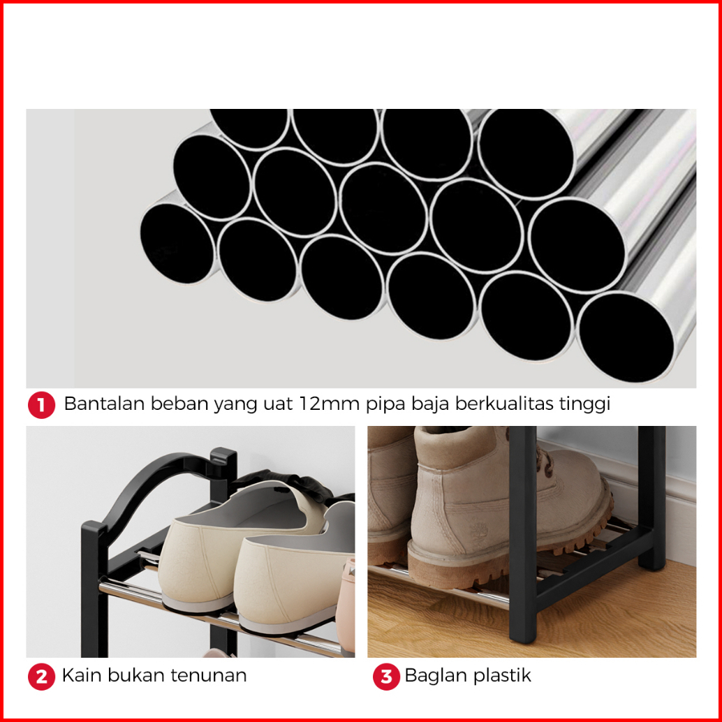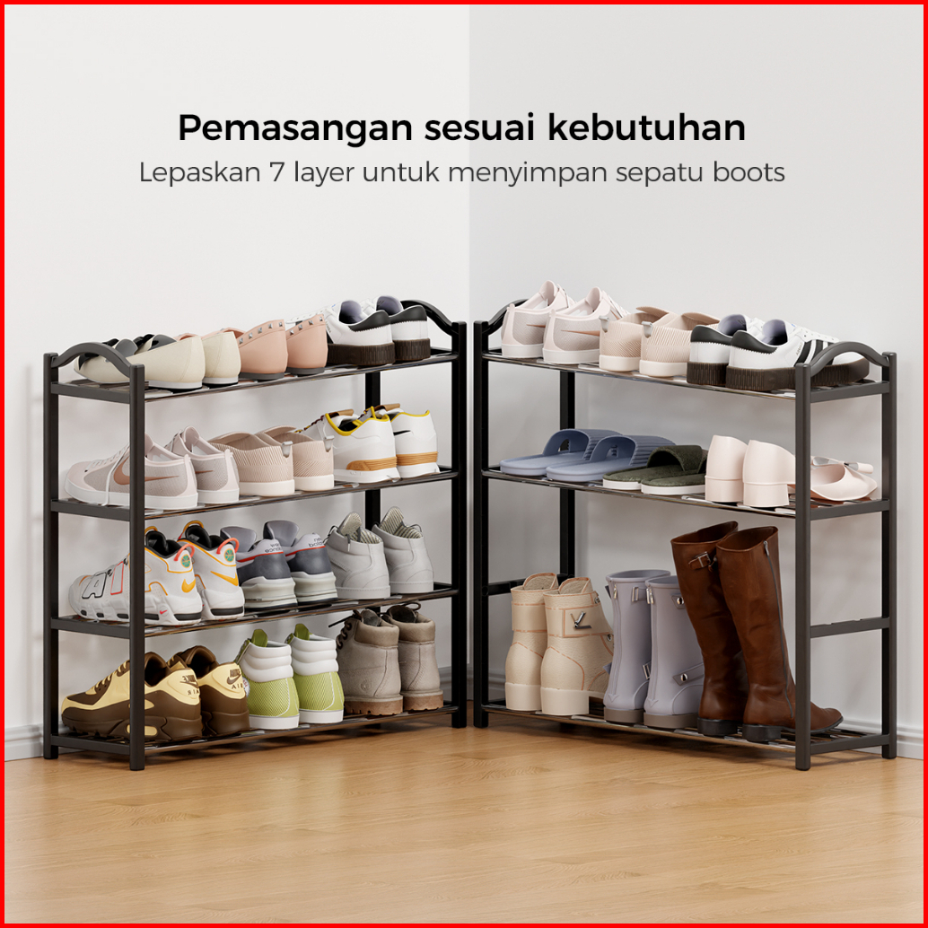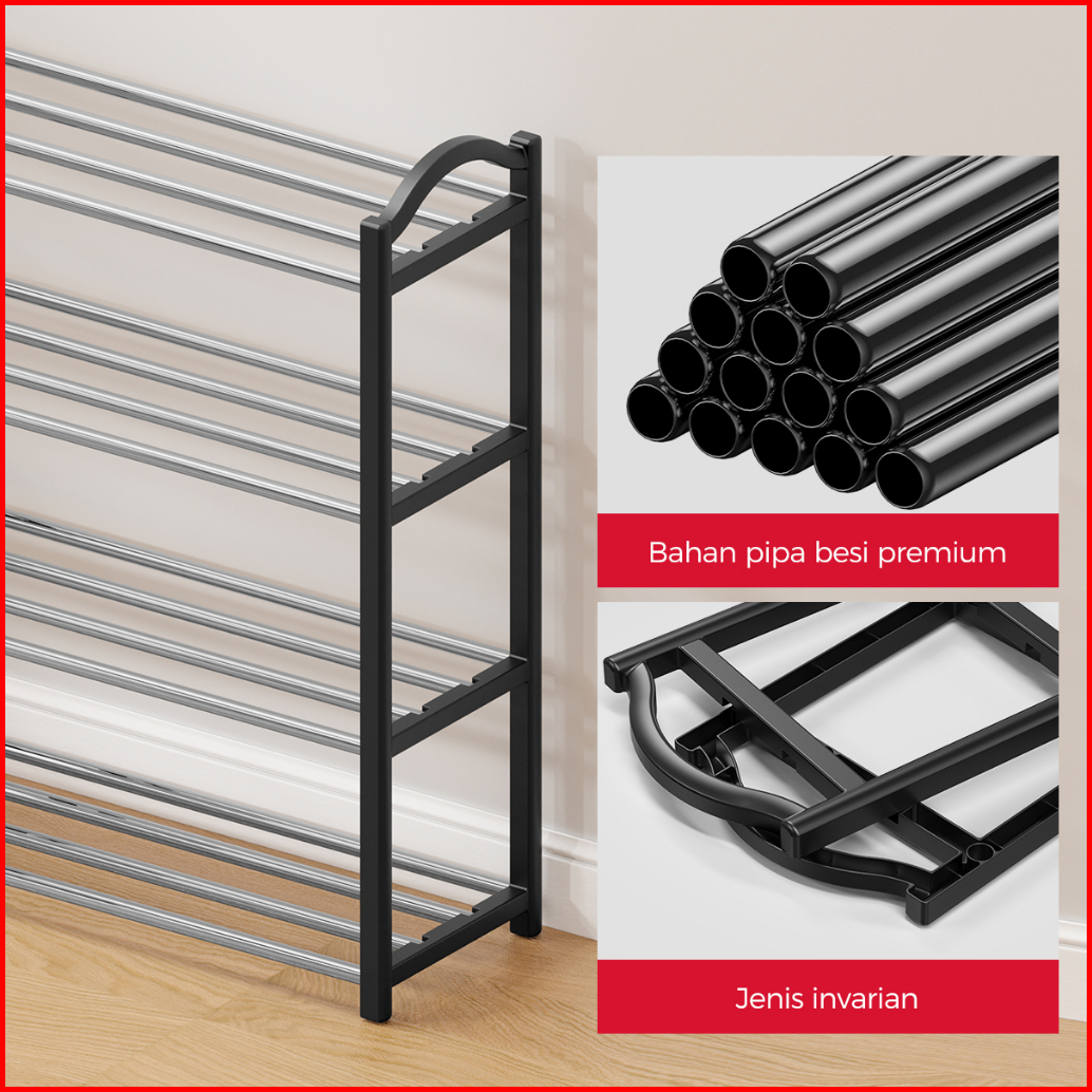 Homes Rak Sepatu 4 Layers Minimalis Besi Tempat Sepatu Portable Rak Susun Sepatu Mulifungsi Rak Serbaguna Murah Kokoh Da