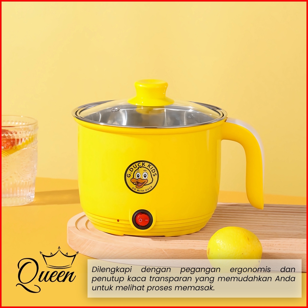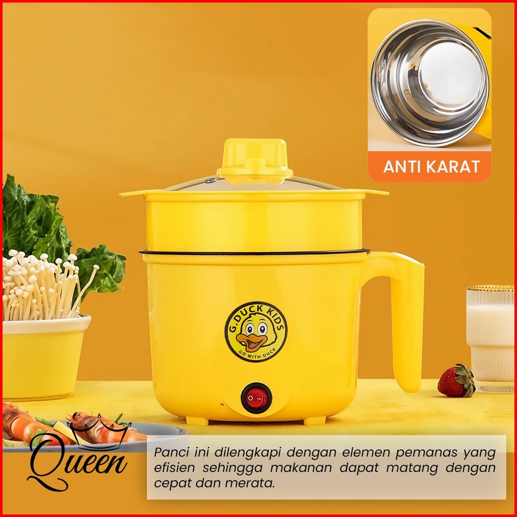 Qg Panci Listrik Multifungsi 1.8l Dengan Kukusan Rice Cooker Mini 18cm Motif Bebek Lucu