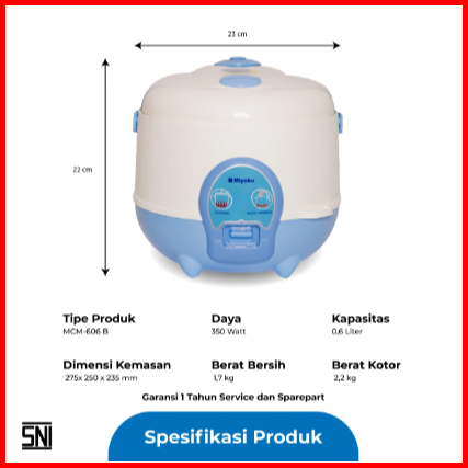Miyako Rice Cooker Penanak Nasi Magic Com 3 In 1 Mcm-606 A Mcm 606 B Mcm606a 0.6 Liter