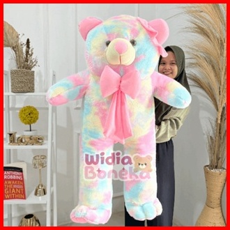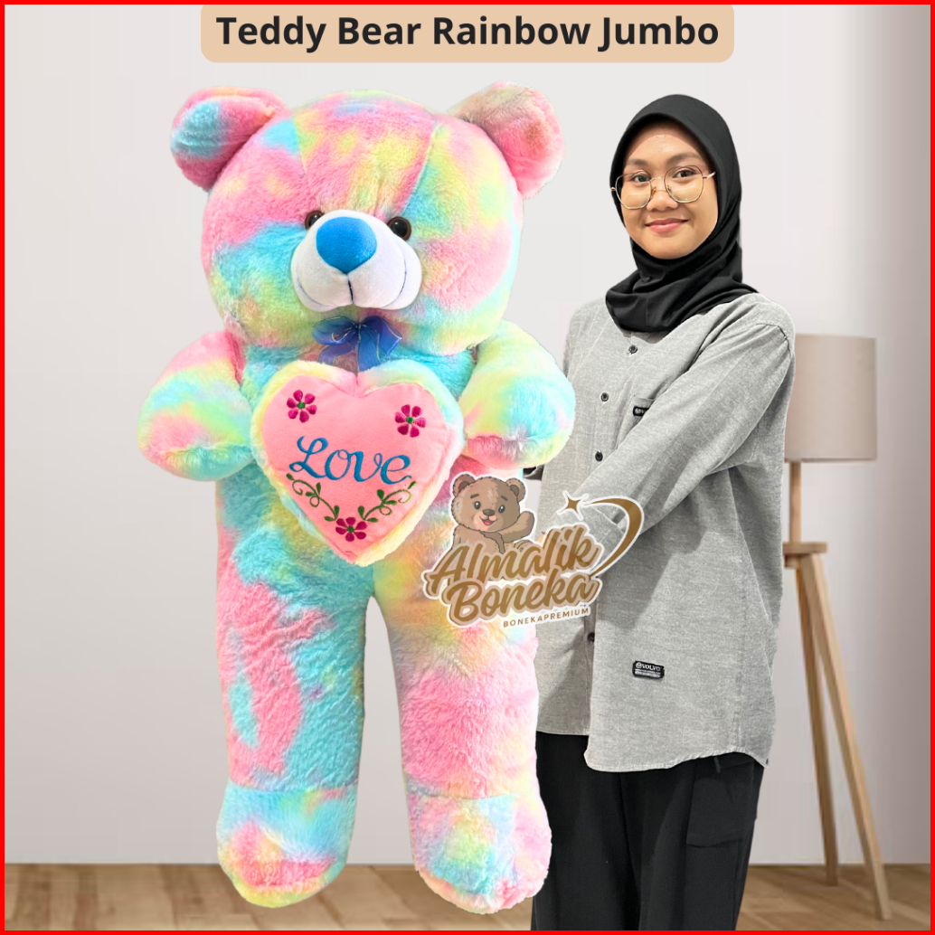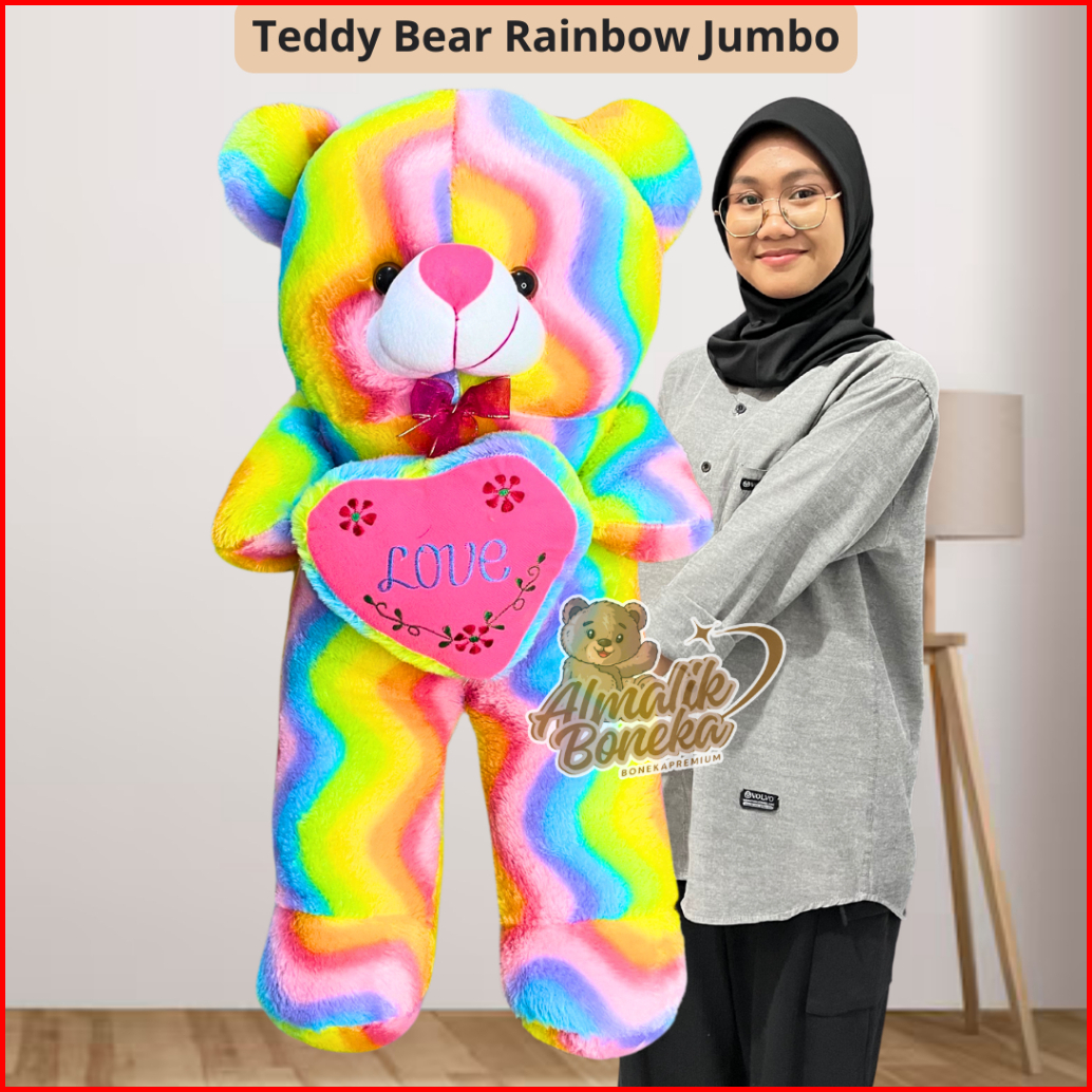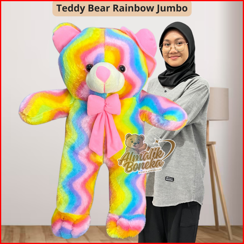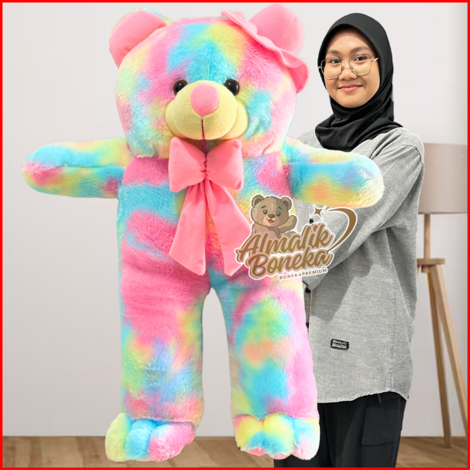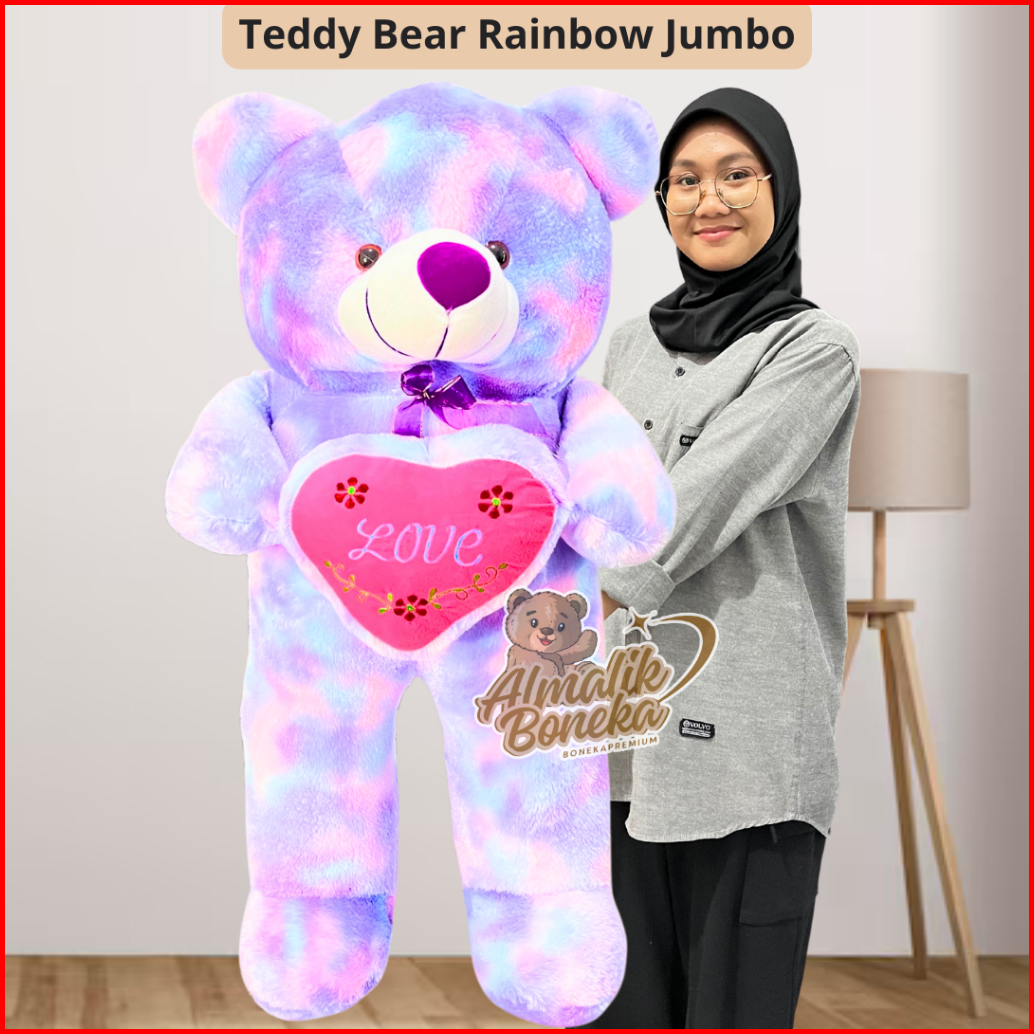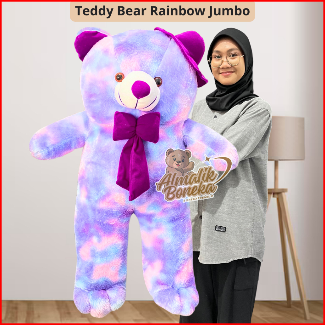 Boneka Jumbo Beruang Teddy Bear Rainbow Pelangi 90cm Warna Pink Ungu Murah Lucu Gede Gratis Ongkir