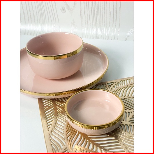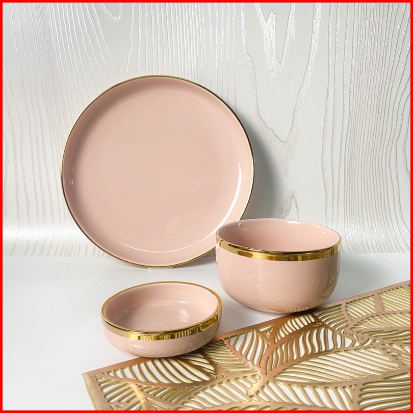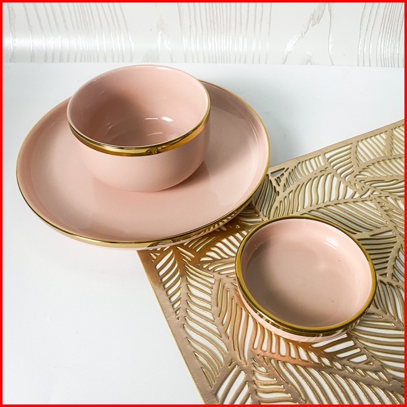 Ashome Piring Set 1 Orang Piring Makan Set Light Pink Isi 3 Pcs Piring Set Keramik List Piring Set Mewah Piring Sultan P