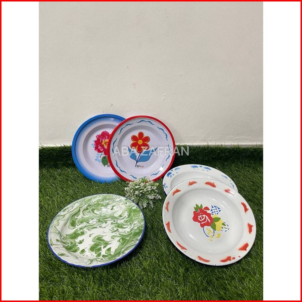 12 Pcs Piring Makan Jadul 23 Cm Panci Enamel Kaleng Seng Motif Brilik Vintage Kuno