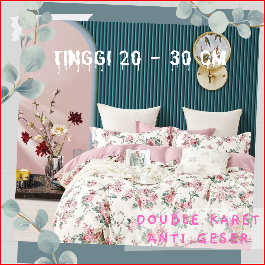 Drs Sprei Double Karet Anti Geser Motif Bunga Aesthetic Microsilk Ukuran 200 180 160 120 Tinggi 20 - 30cm Seprei Single