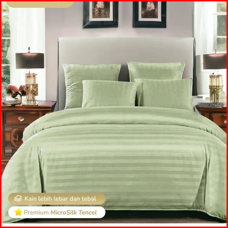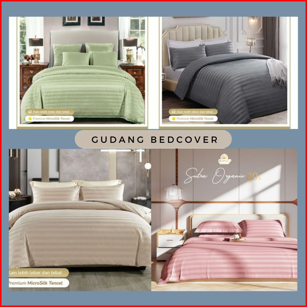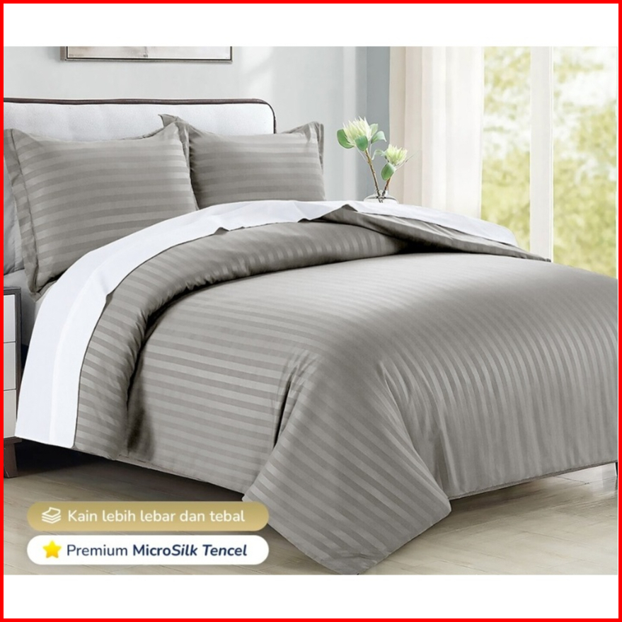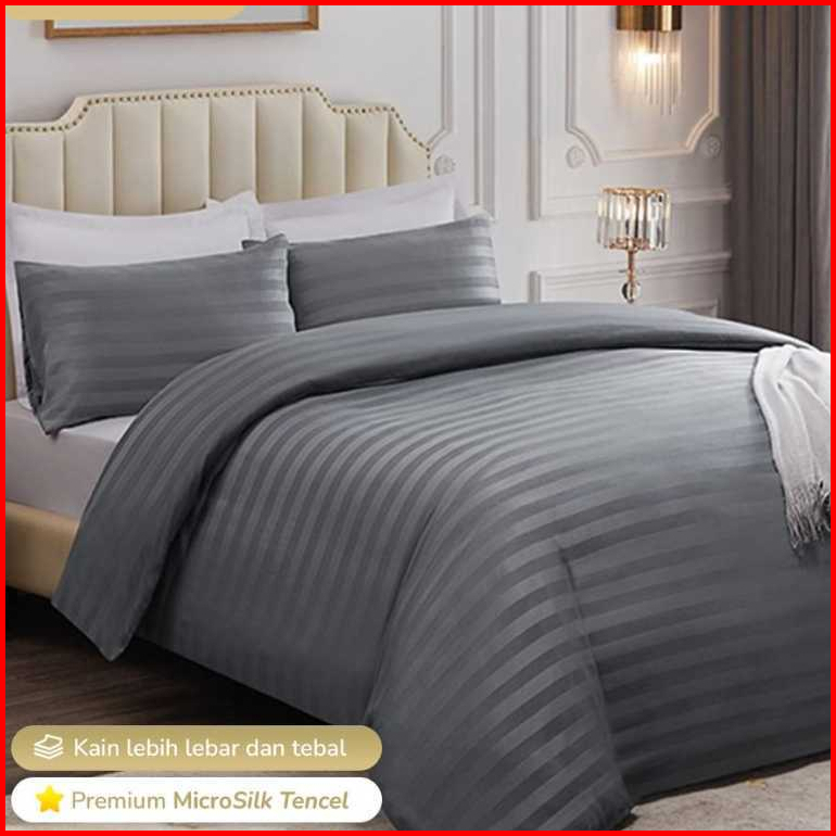 Bedcover Set Hotel Motif Garis Bedcover Micro Tencel