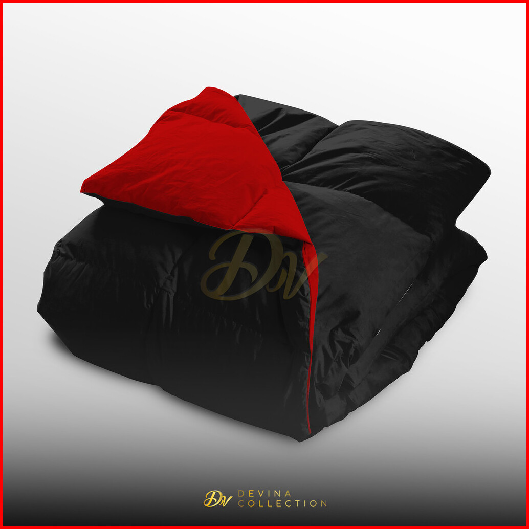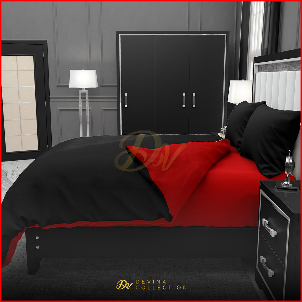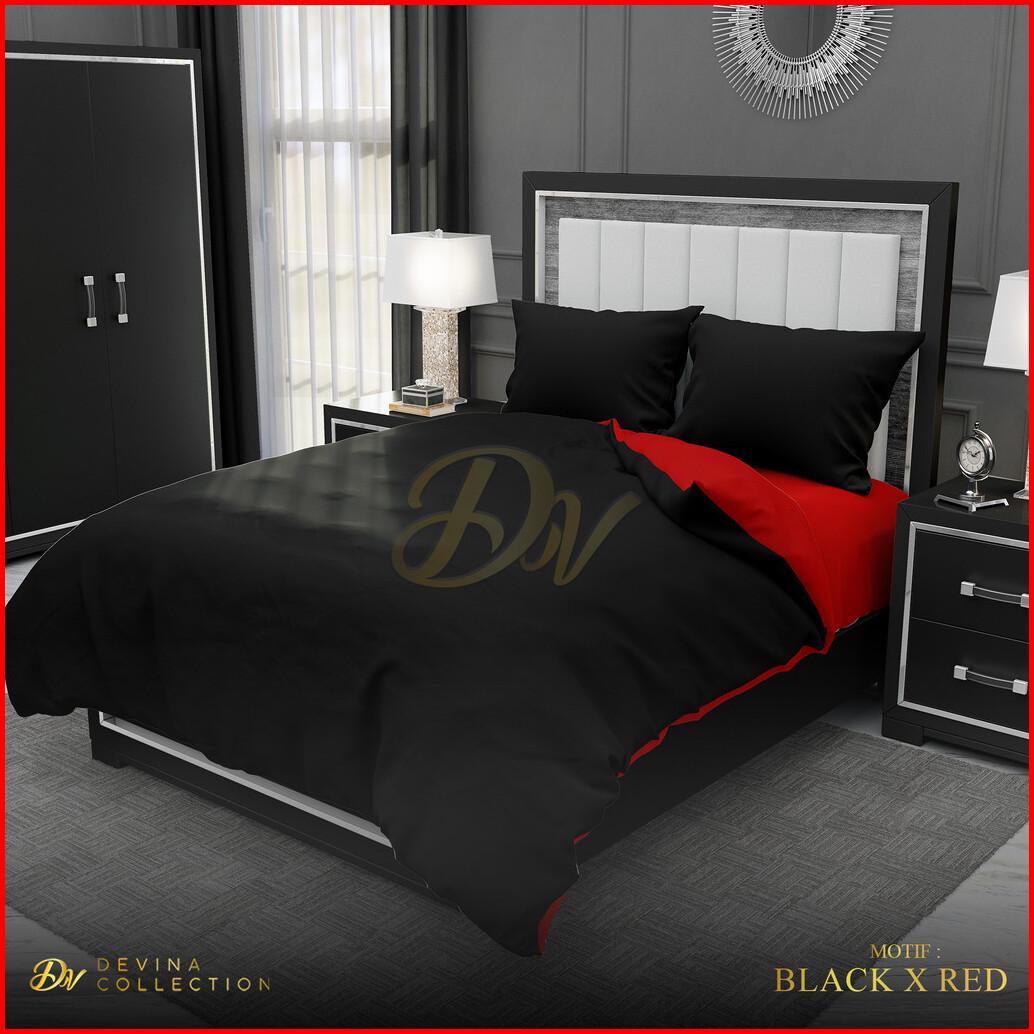 Devina Collection Bedcover Sprei Set Karet Anti Geser Two Tone Merah Mix Hitam Uk King 180x200