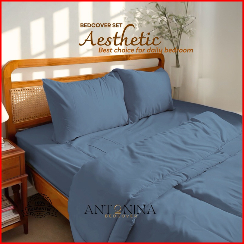 Bedcover Set Sprei Polos Katun Lokal Tebal Tone Dingin 160x200 Cm Kualitas Premium Aesthetic