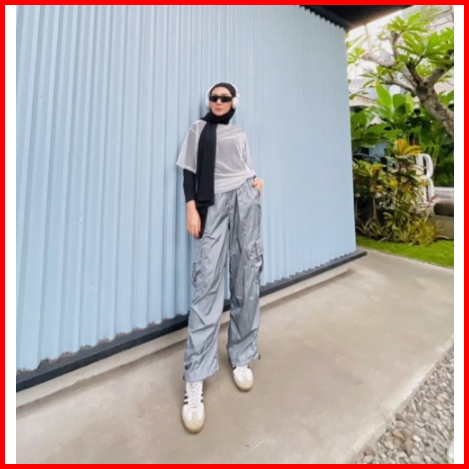 Celana Cargo Parasut Nilon Wanita Korean Look Kekinian