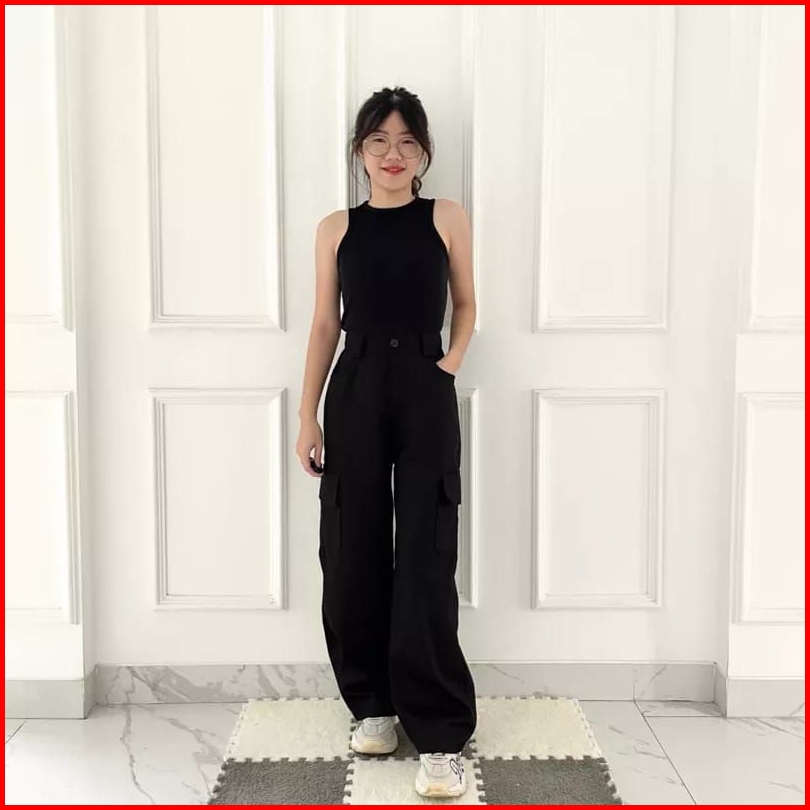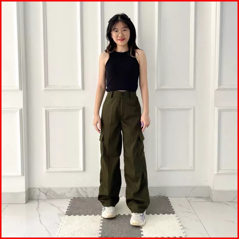 Celana Cargo Wanita Highwaist Loose Cargo - Cargo Pants Wanita Cargo Polos