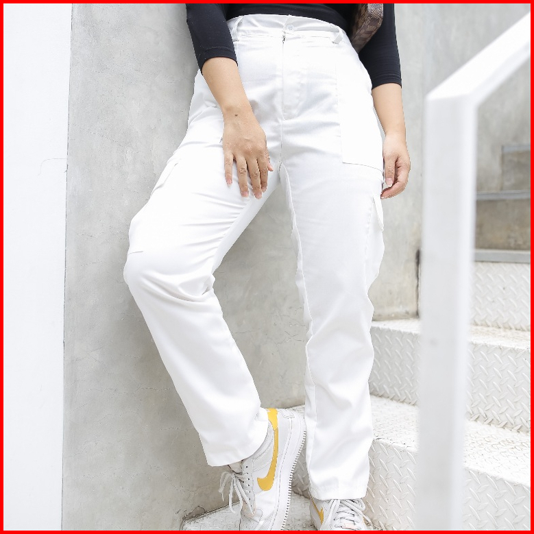 Stacie Pants Pokect Celana Cargo Wanita Pria Unisex Coksu Black Army Purple White Cargo Haiclo Chino