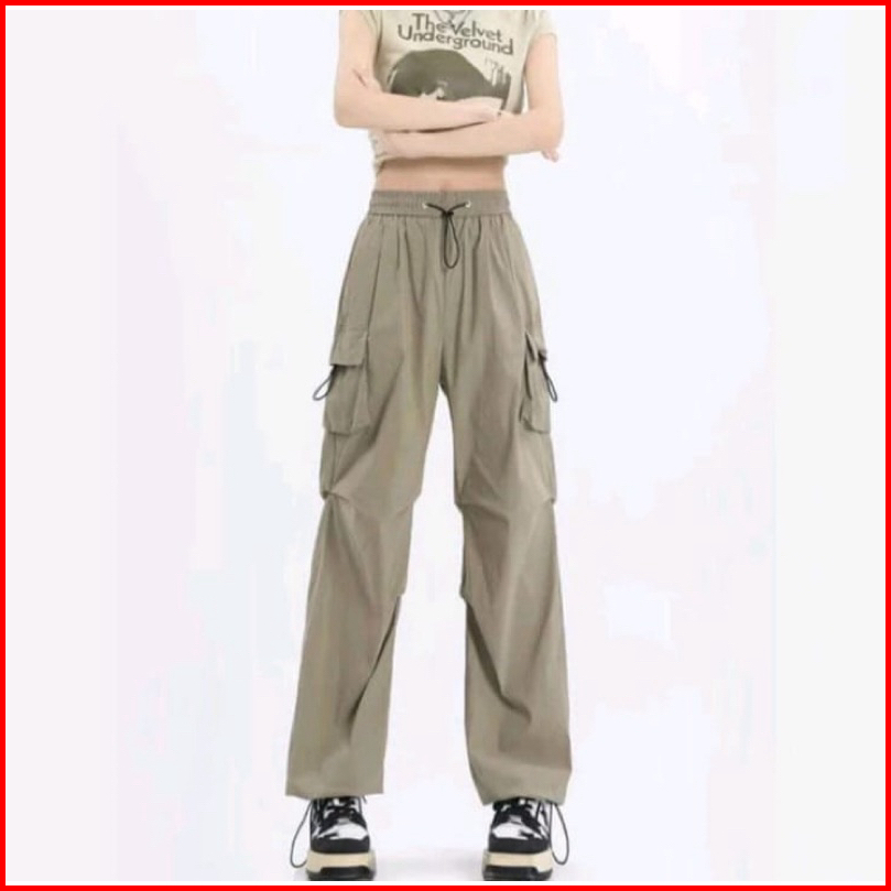 Cargo Pants Wanita Highwaist Loose Korean Style Jumbo - Celana Cargo Wanita Kekinian