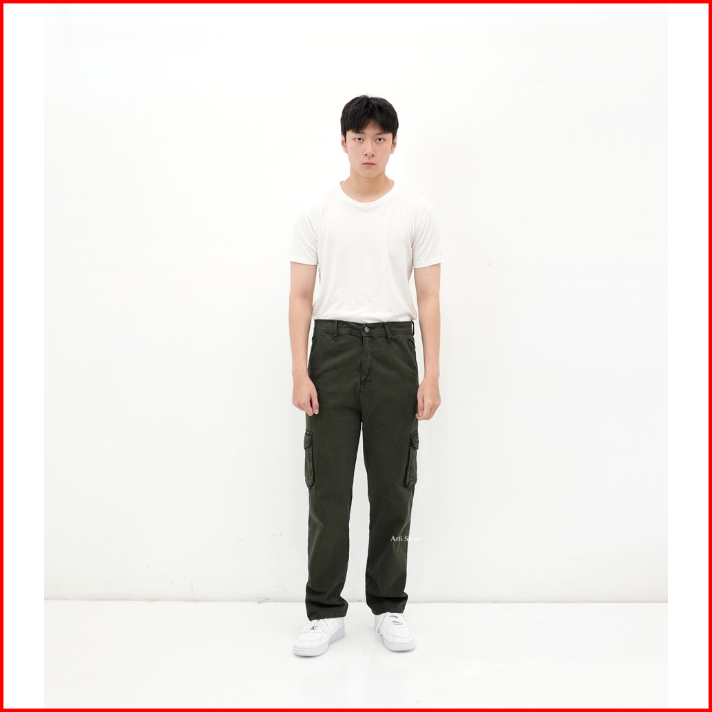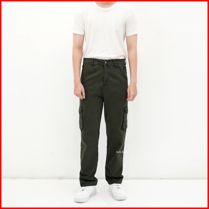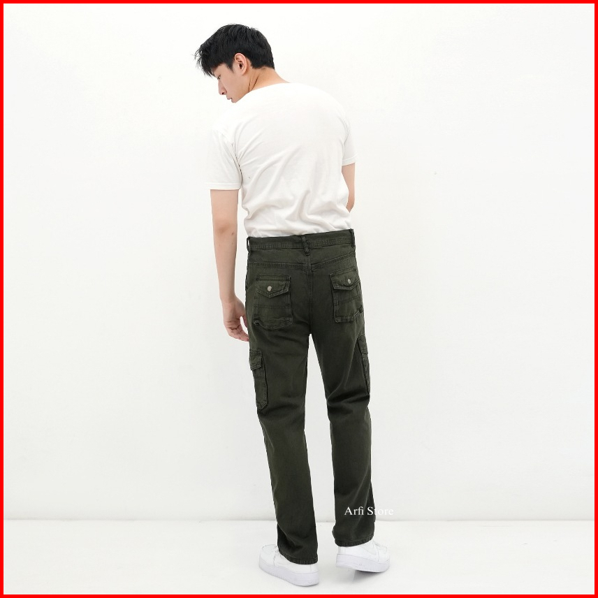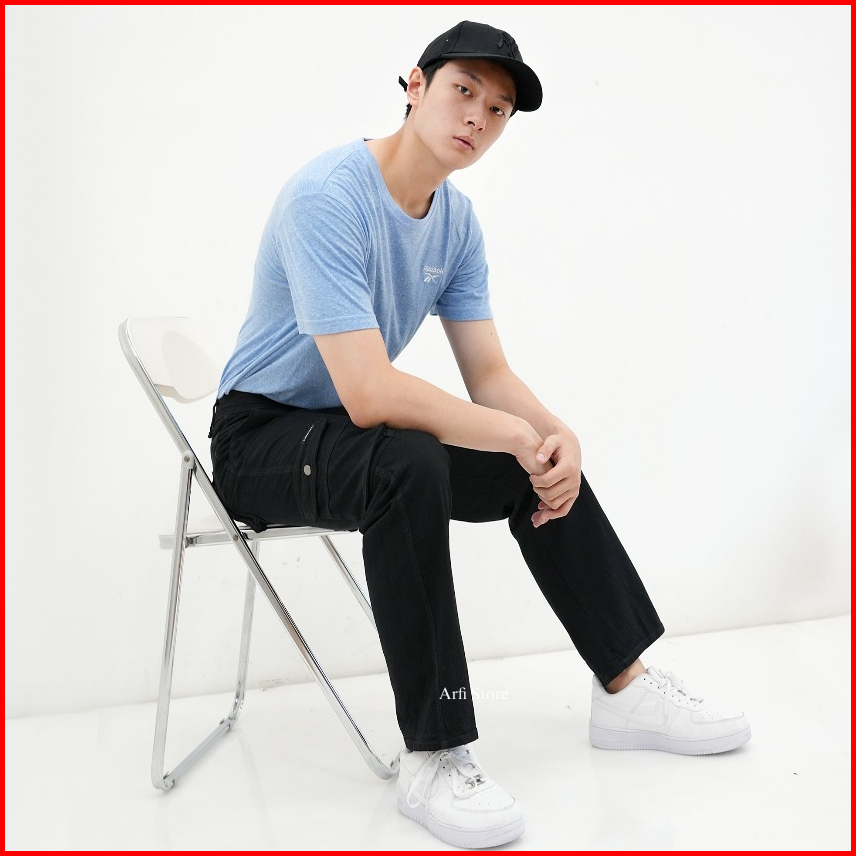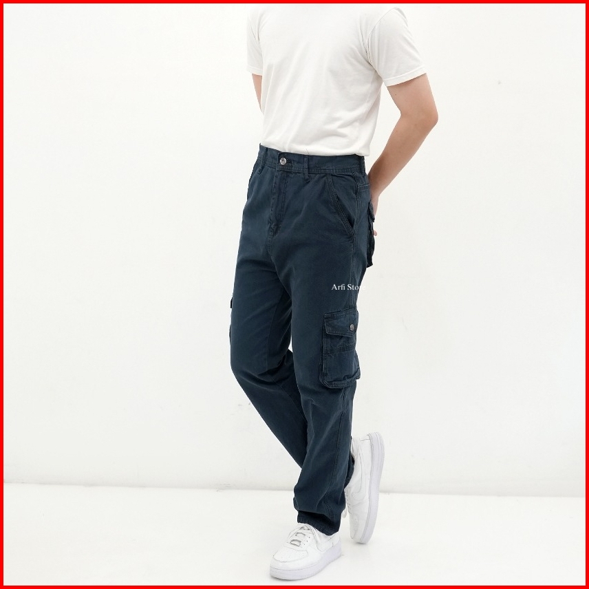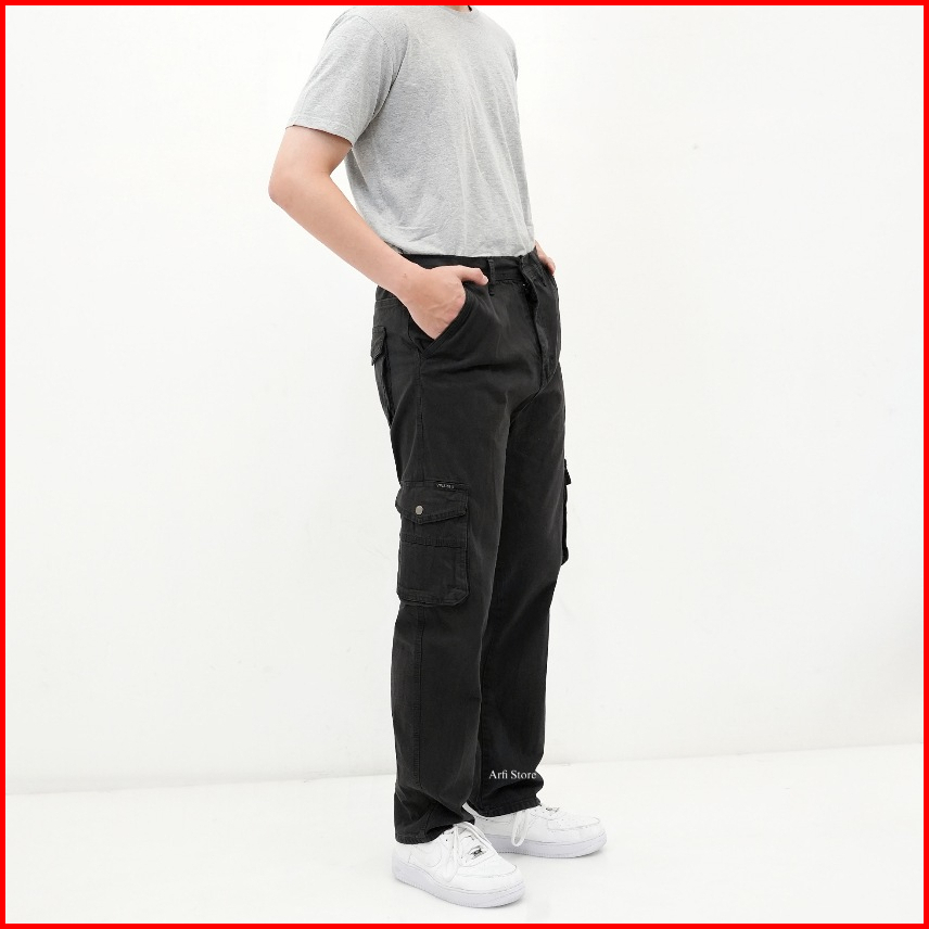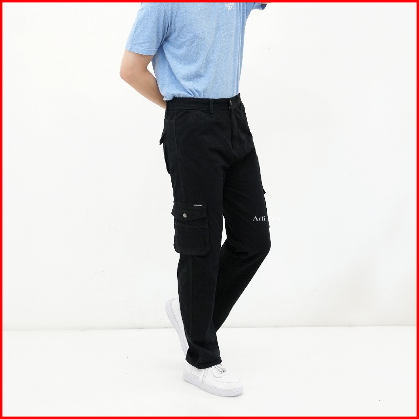 Vinarro - Celana Cargo Pria Tebal Bahan Semi Jeans Celana Kimpol Tebal Adem Gunung Pria Pdl Dan Halus Dewasa Katun Hitam