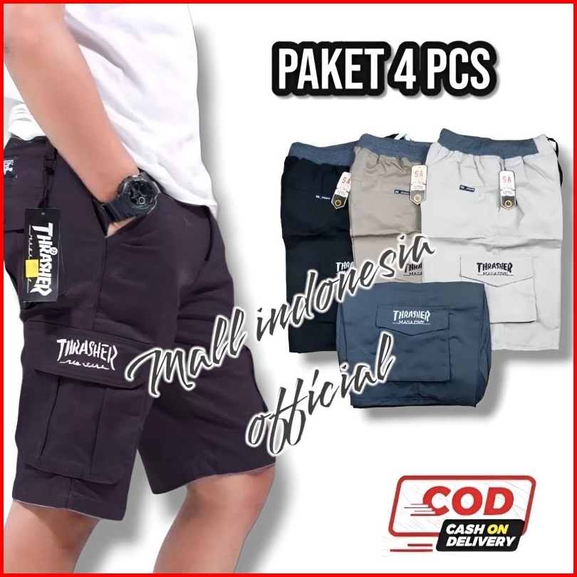 Bahan Tebal Bundle 4 Pcs Celana Jumbo Pendek Pria Cargo Kargo Size Dewasa Promo Paket Isi 4 Pcs