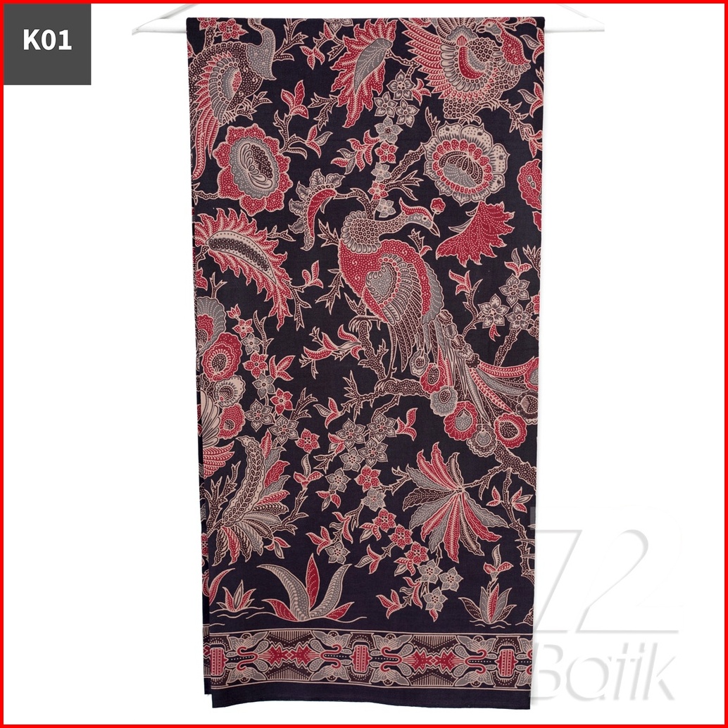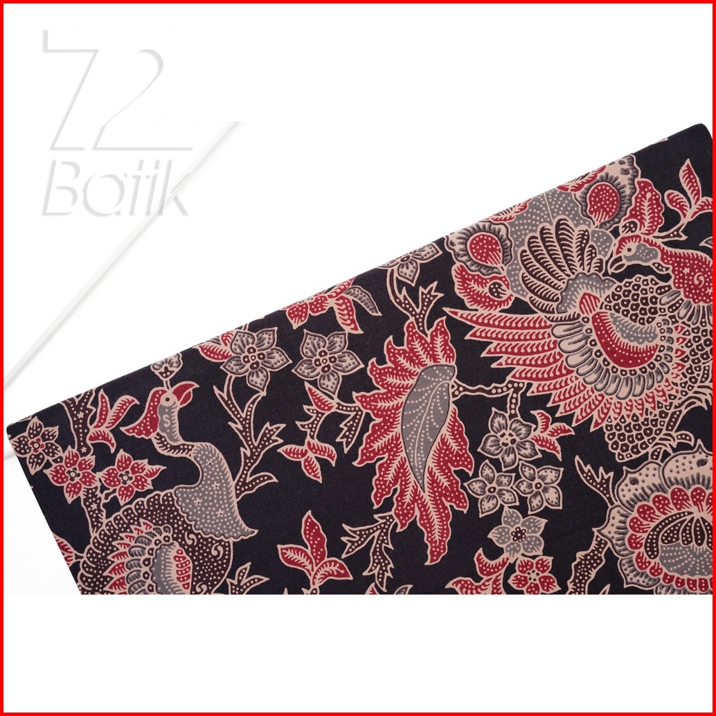 Kain Batik Premium Bahan Katun Motif Merak Warna Hitam 721898 Cap 72 Jarik Jarit Samping Kebat Panjang Batik Katun Moder