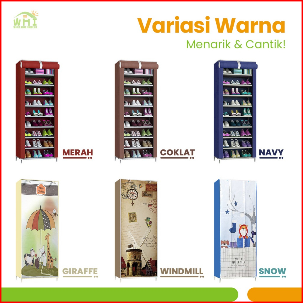 World Home Rak Sepatu Kain 10 Susun Rak Penyimpanan Sepatu Serbaguna Rak Sepatu Kain Portable 1099