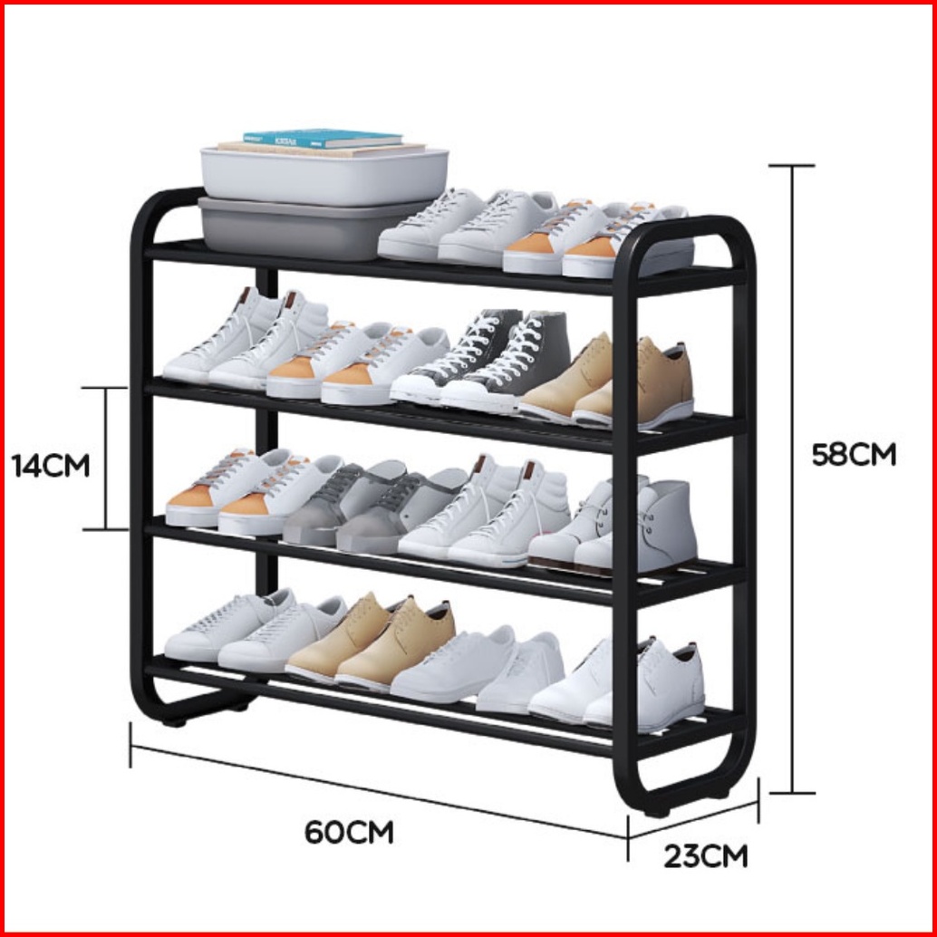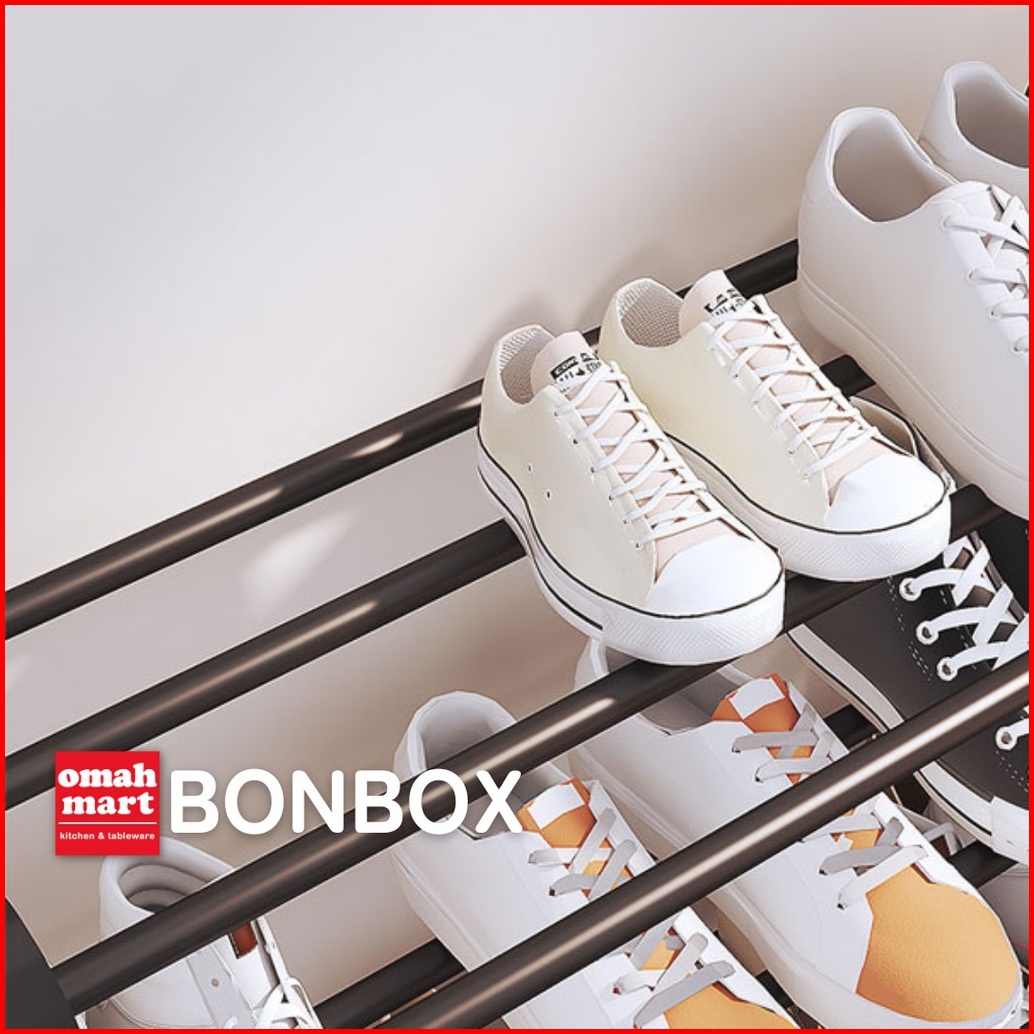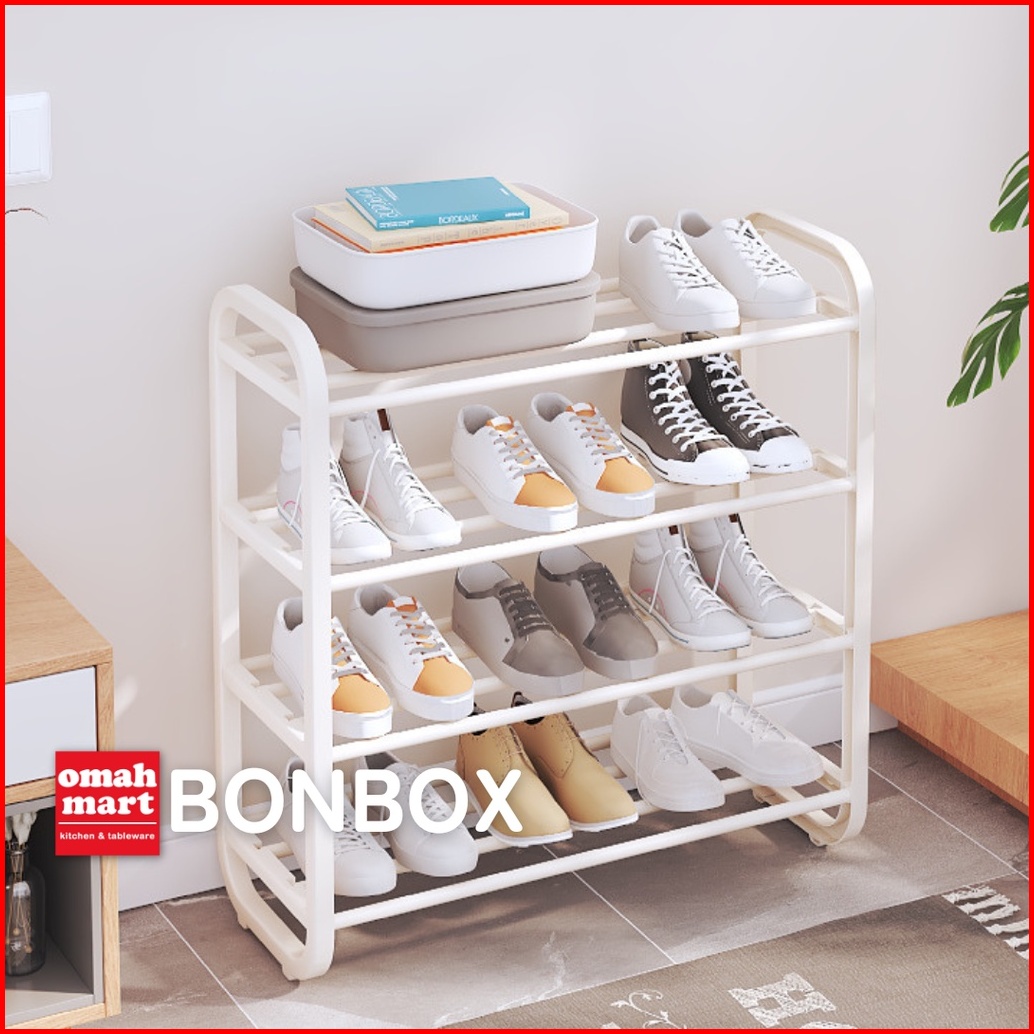 Bonbox Rak Sepatu Sandal 4 Susun Besi Plastik Minimalis Hitam Kuat Dan Tahan Lama