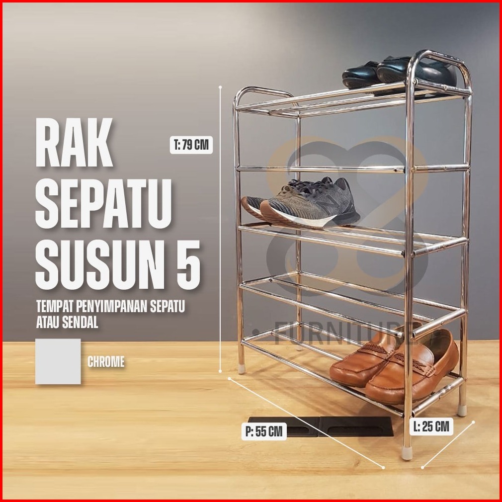 Rak Rak Sepatu Rak Sepatu Susun 5 Rak Serbaguna Stainless Susun 5