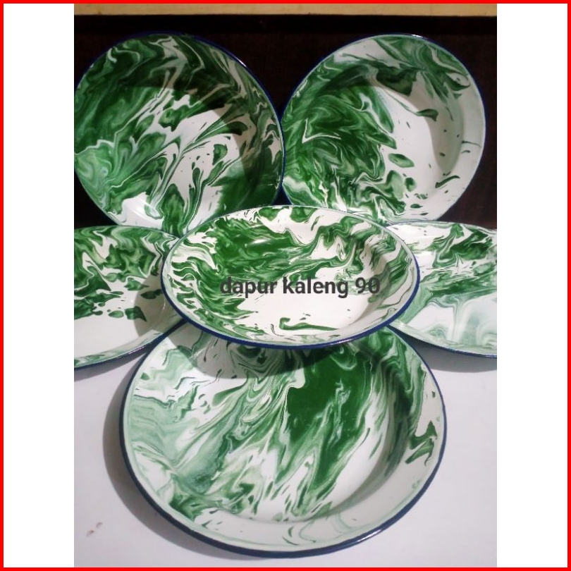 Piring Makan Enamel Vintage Lurik Brlirik 6 Pcs Ukuran 22 Cm