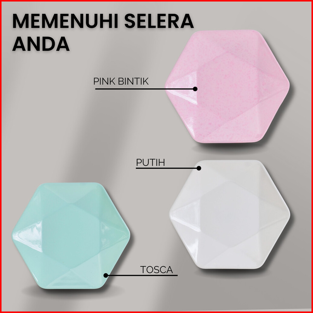 Piring Melamin Saji Segi Enam Lusinan 6 12pcs Tahan Panas - Saji Kue Buah Warna Pastel