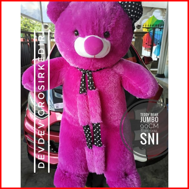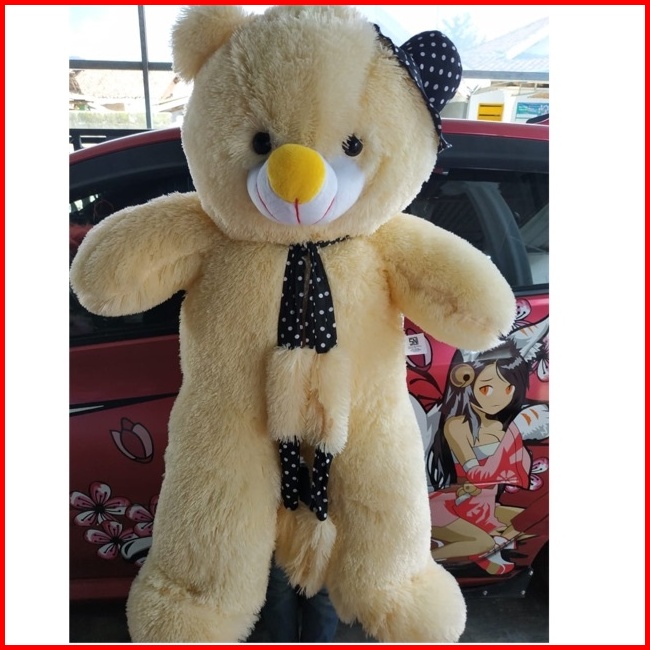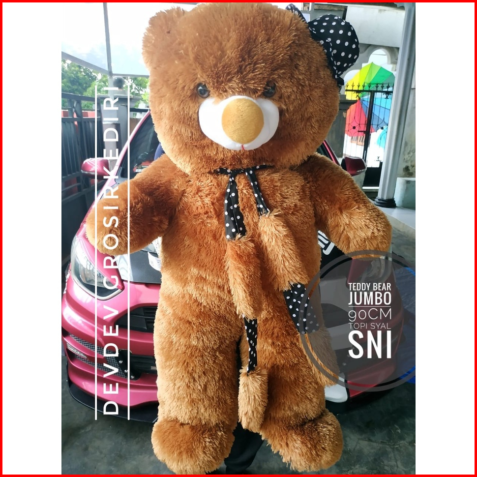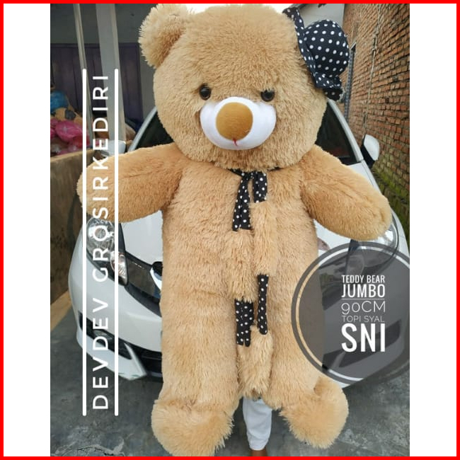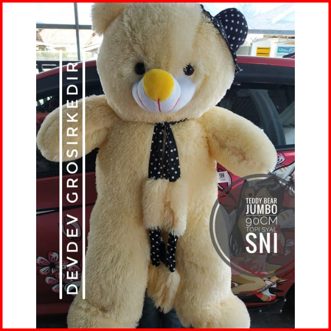 Boneka Teddy Bear Jumbo Boneka Teddy Bear Jumbo Topi Syal Cream Sni