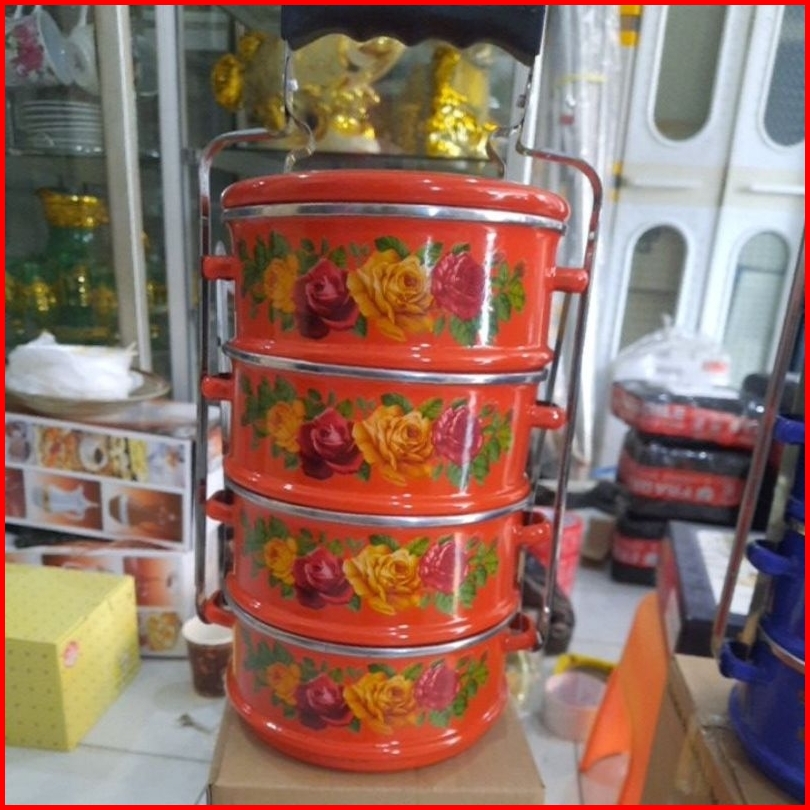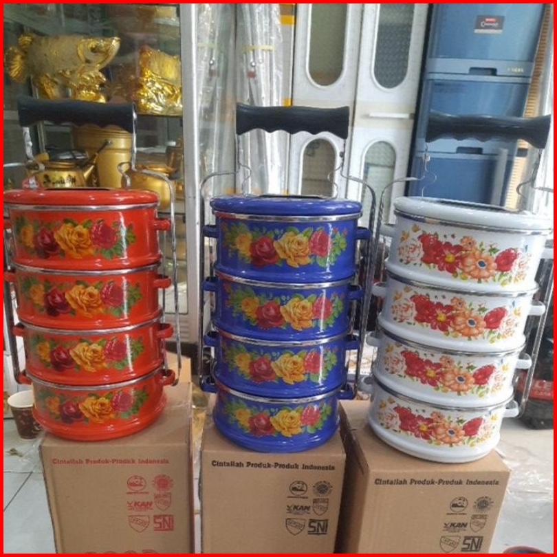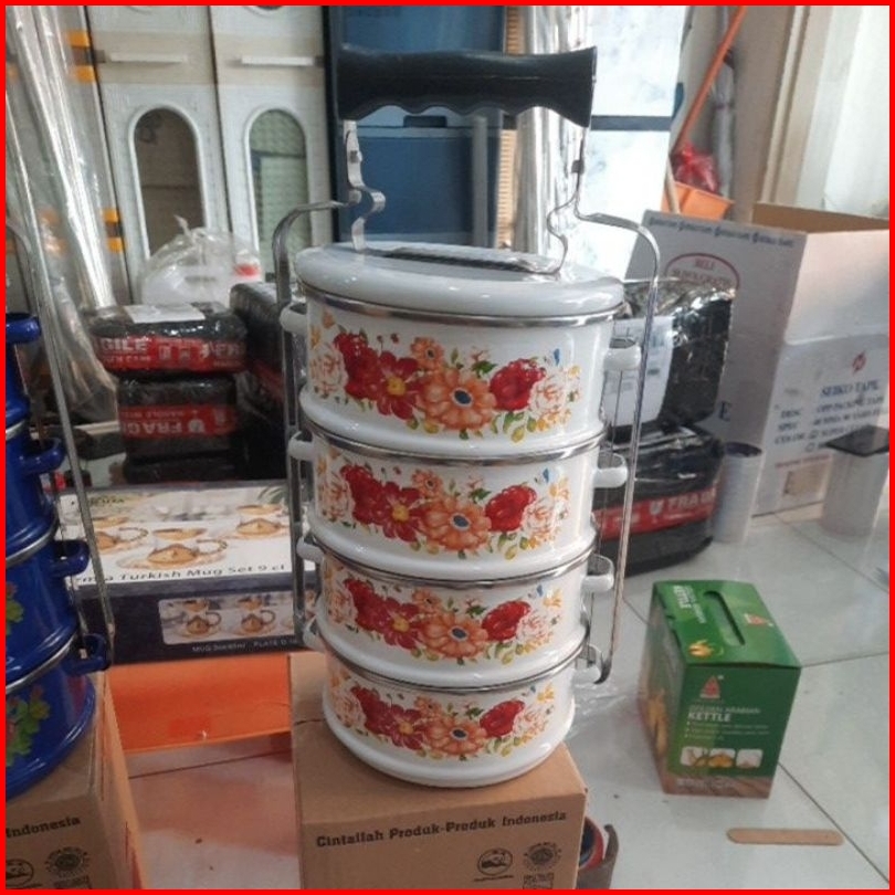 Rantang Panda Enamel Ukuran 14cm Susun 4 Maspion