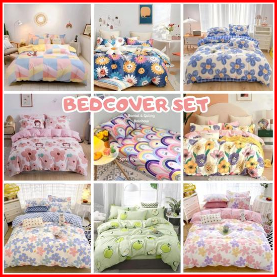 Bedcover Set 1 Set Bedcover Kotak-kotak Motif Korean Aesthetic Bedcover Two Tone 2 Warna Aesthetic