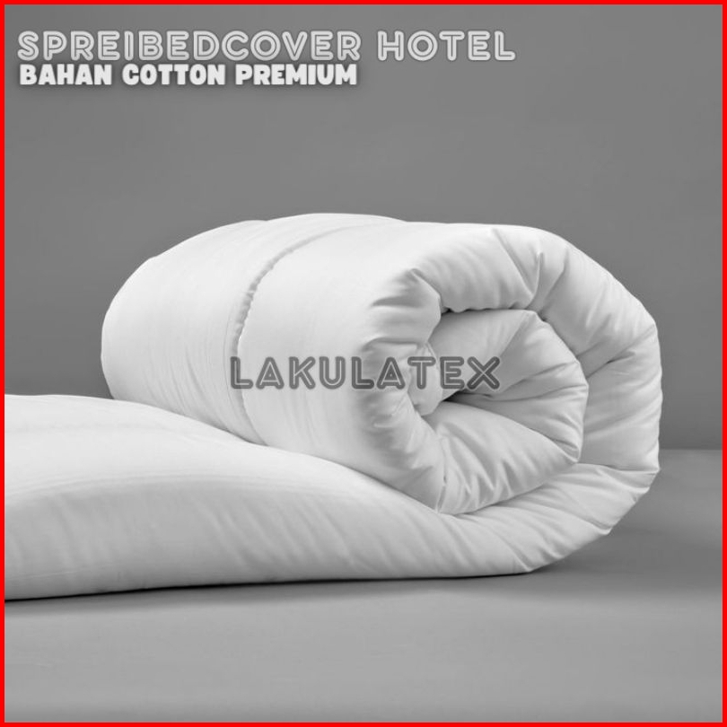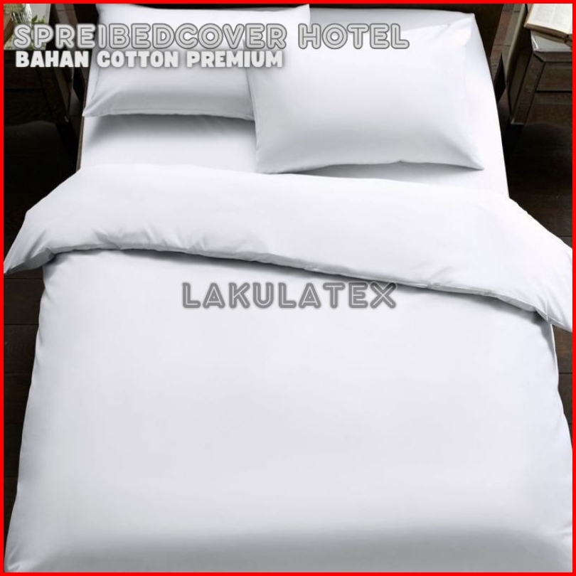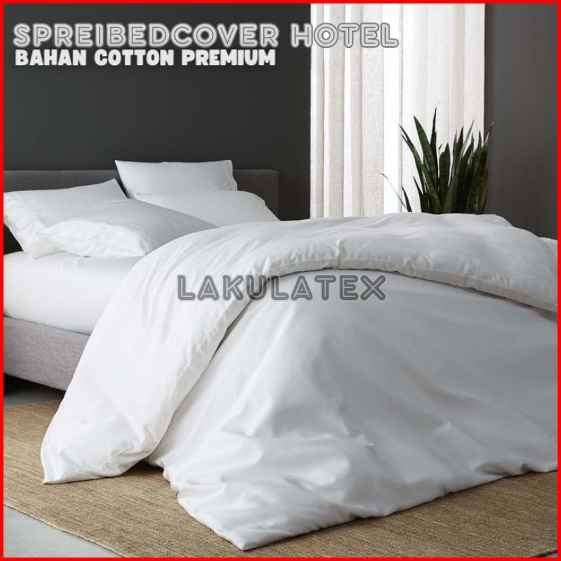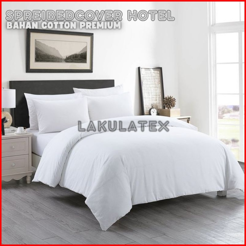 Lakulatex - Bedcover Sprei Set Hotel Bahan Katun Warna Putih Polos Mewah Karet Sprei Anti Geser