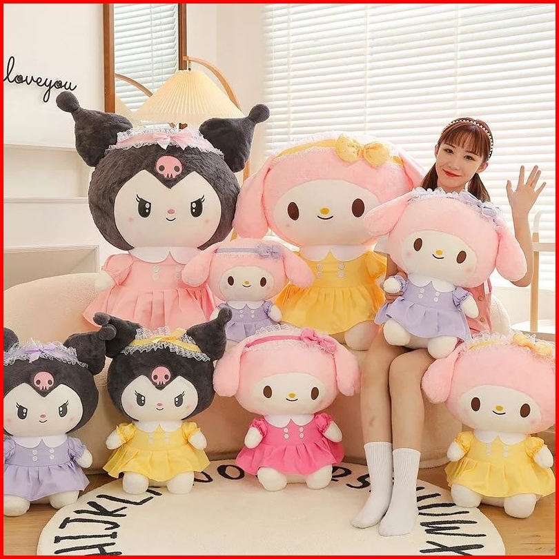 Boneka Kuromi Melody Stuffed Plush Terbaru Pake Baju Lucu Imut Mainan Anak Karakter Kartun Melodi