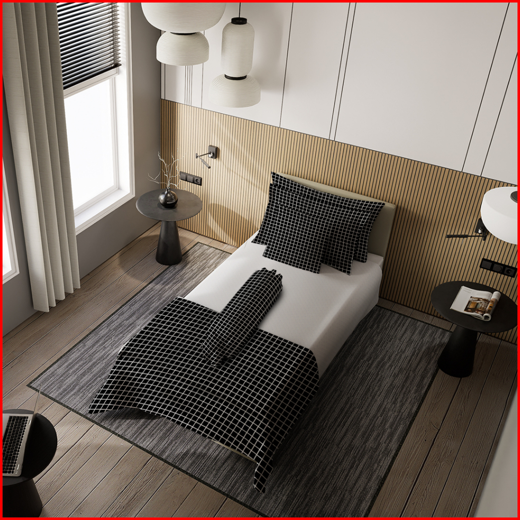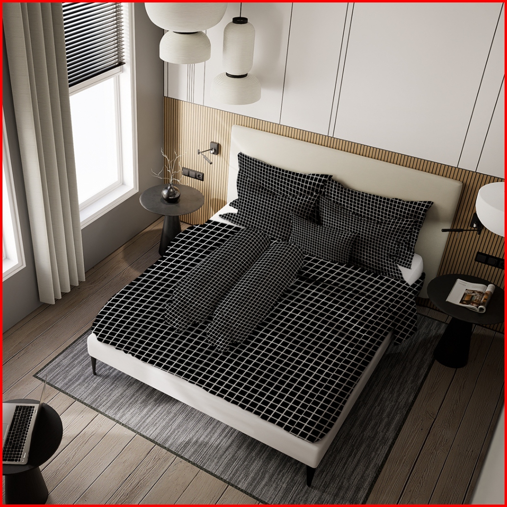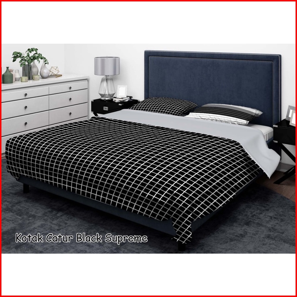 Nyenyak Bed Cover Aesthetic Motif Kotak Black And White - Super King 240x240 King 220x220 Single 160x220