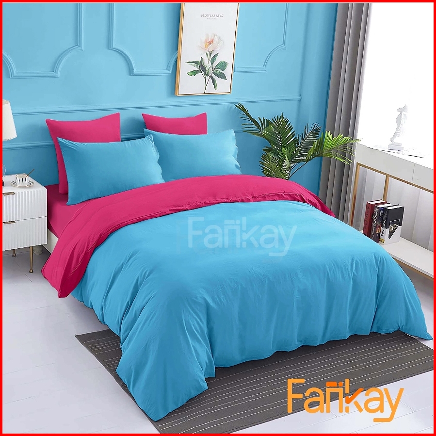 Bed Cover Set Baby Blue Fuchsia - Bed Cover 100x200 - 200x200 - Fankay