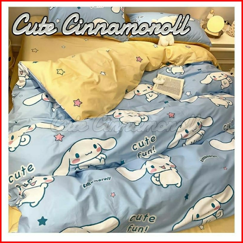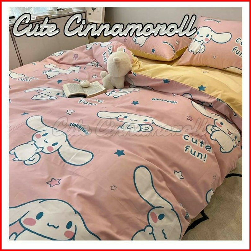 Bedcover Sprei Anti Geser Katun Esra Full Motif Cute Cinnamorol 2 Variasi Warna Pink Dan Biru