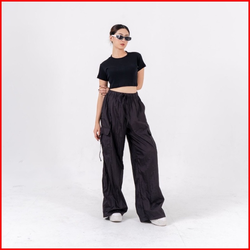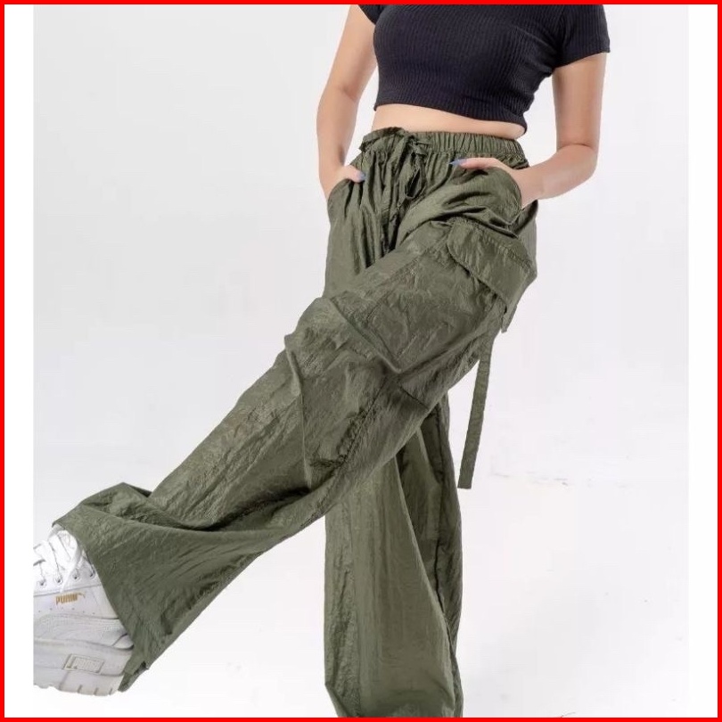 Celana Kulot Panjang Cargo Pants Parasut Wanita Korean Style Merlinz