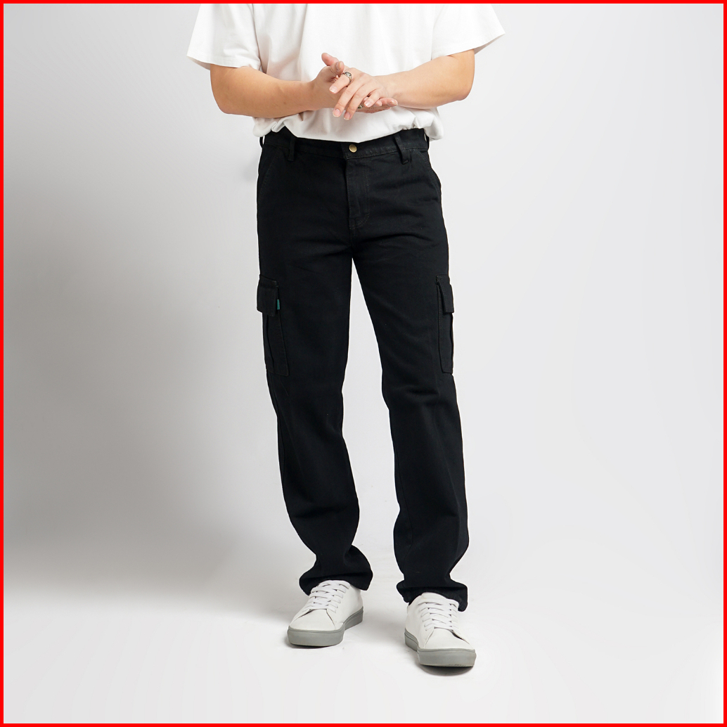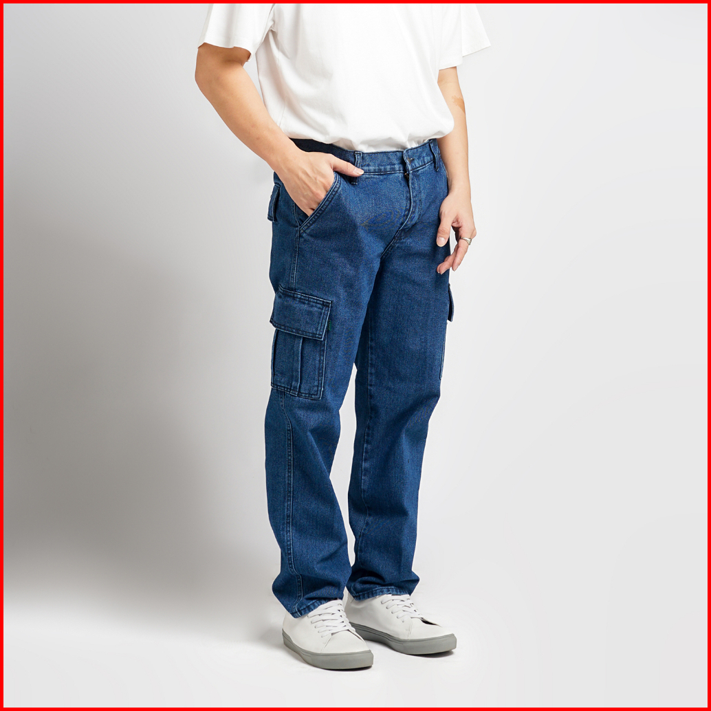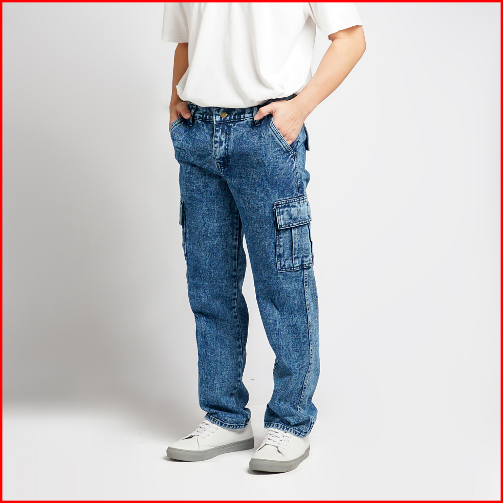 Pluviophile - Long Cargo Pants Jeans Celana Cargo Jeans Loose Fit Reguler Standard Washed