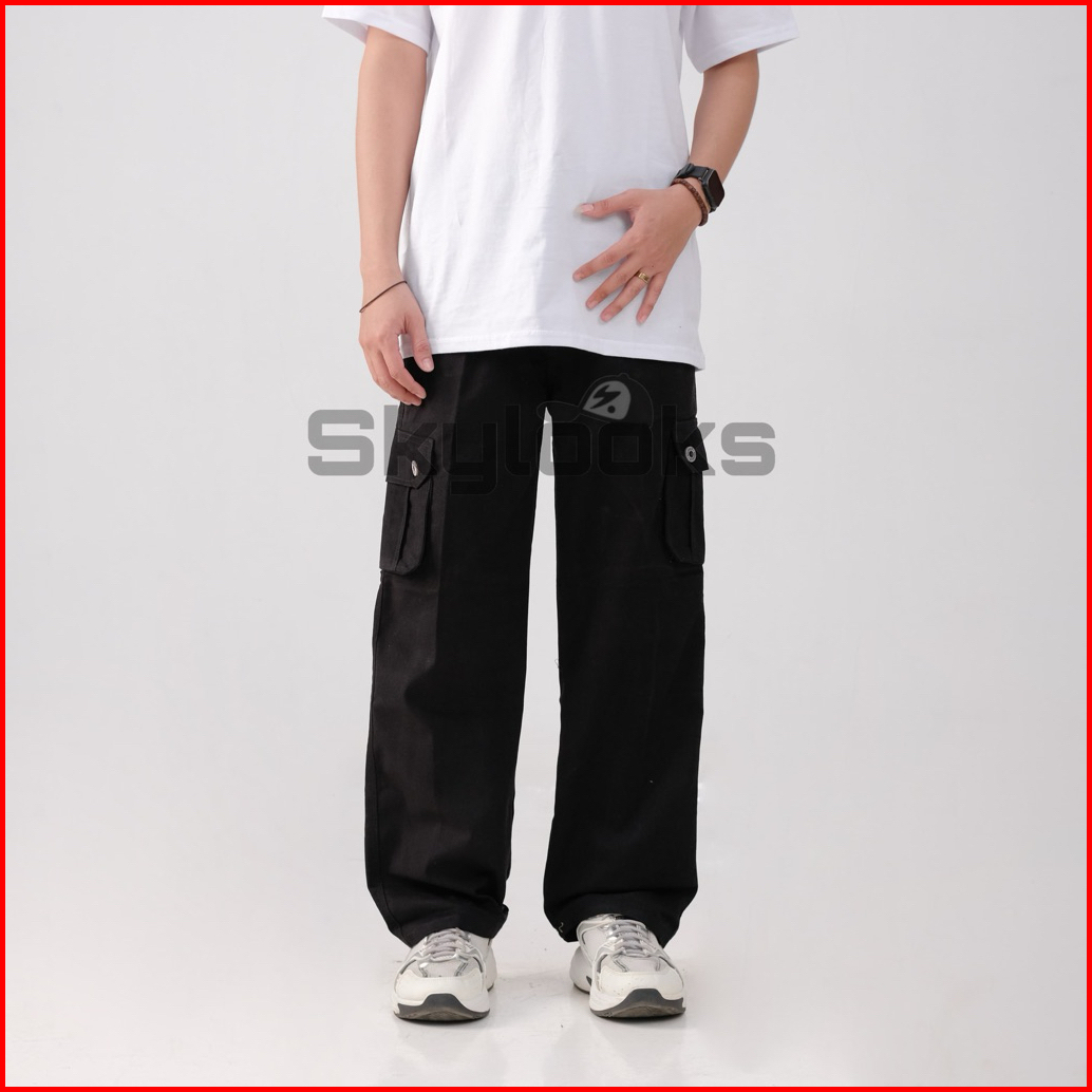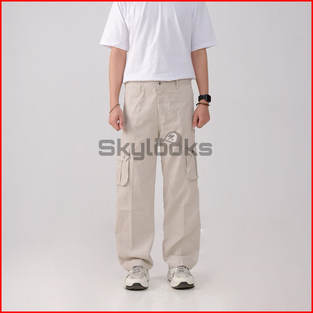 Skylooks.id-celana Cargo Twill Cargo Panjang Gombrong Cotton Twill Pria Premium