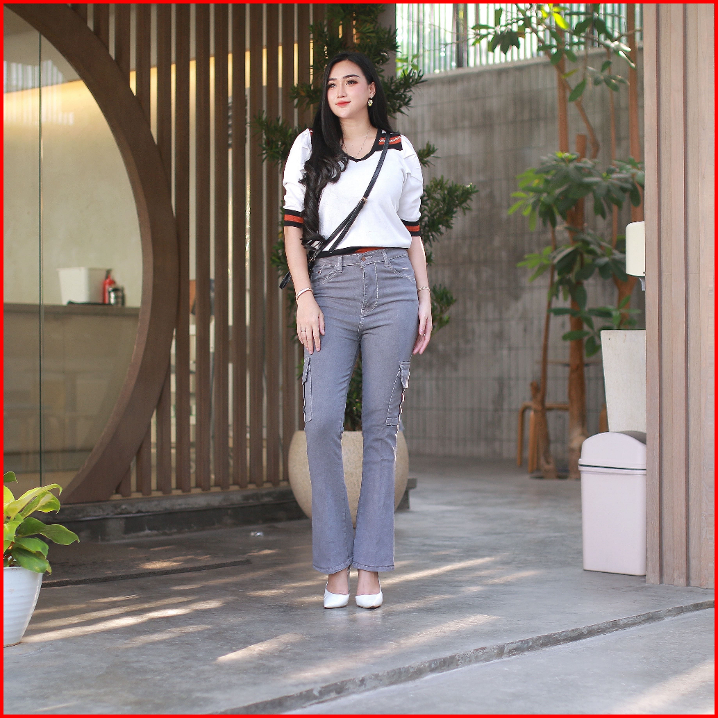 Celana Cargo Cutbray Stretch Highwaist Jeans Big Size Jumbo 27-42