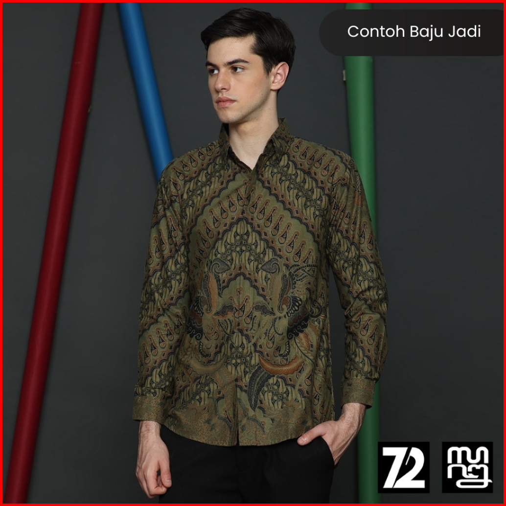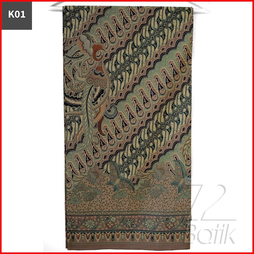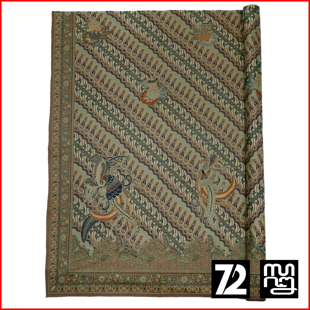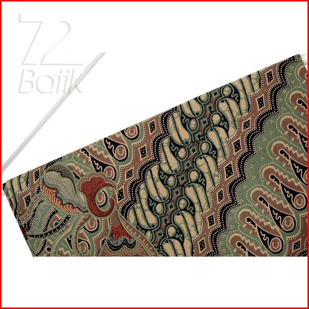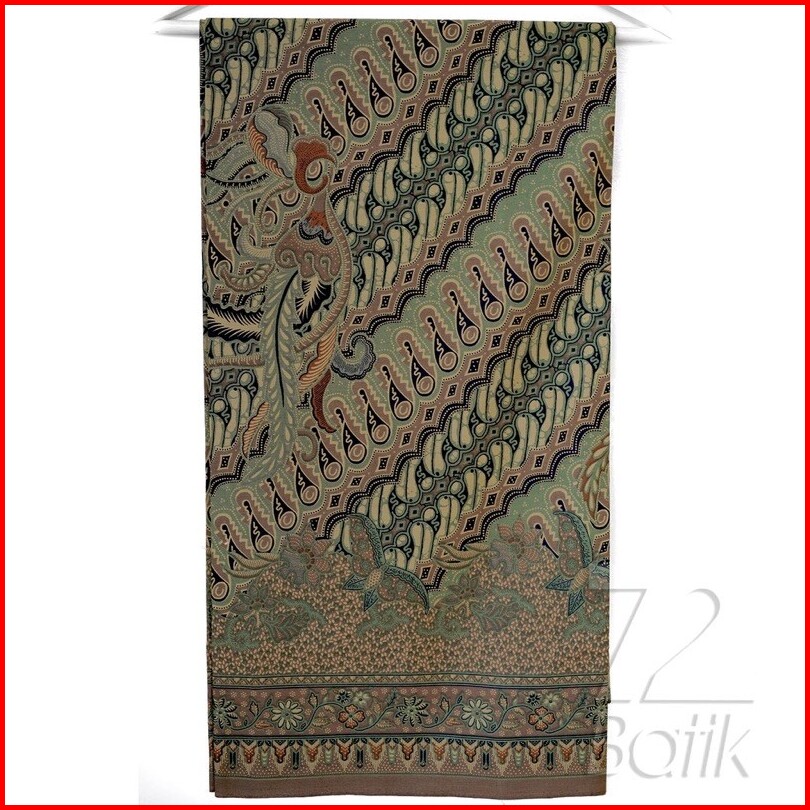Kain Batik Premium Bahan Katun Motif Parang Seling Kusumo Hijau Abu Merak Warna Olive Sage Green 726472 Cap 72 Jarik Jar
