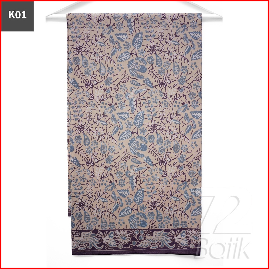 Kain Batik Premium Bahan Katun Motif Daun Kupu Warna Cream Lilac Lavender 721327 Cap 72 Jarik Jarit Samping Kebat Panjan