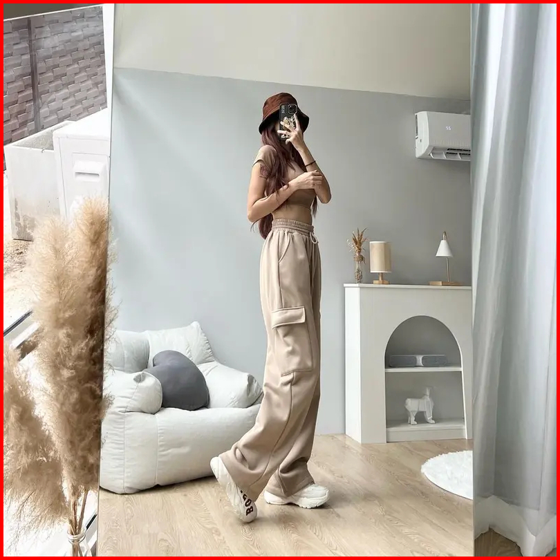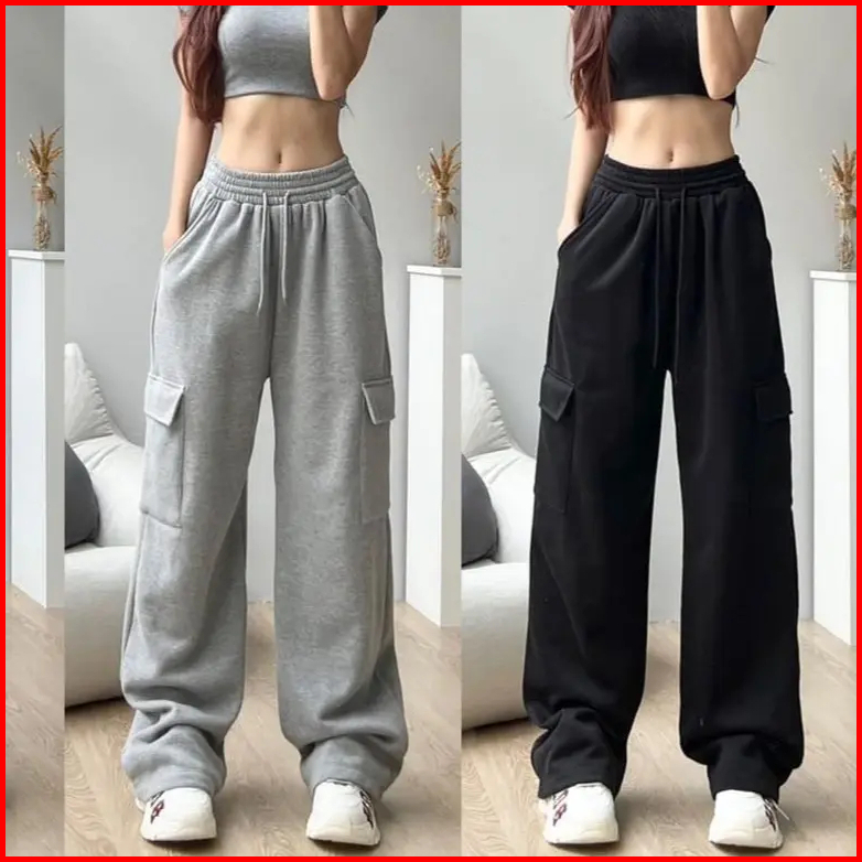 Celana Pocket Cargo Wanita Jumbo Korean Style Cargo Pants Wanita Highwaist Sweatpants