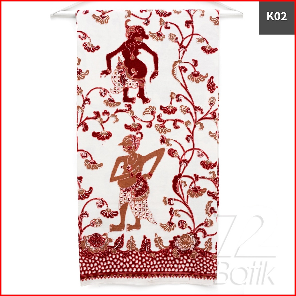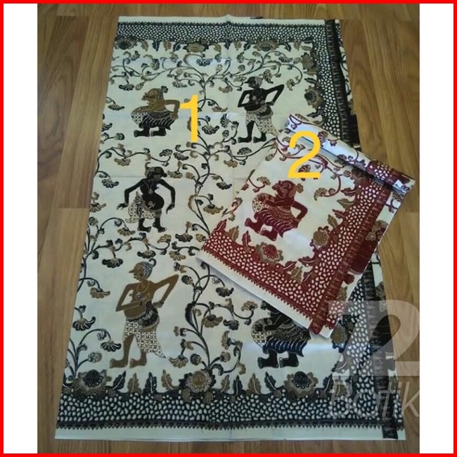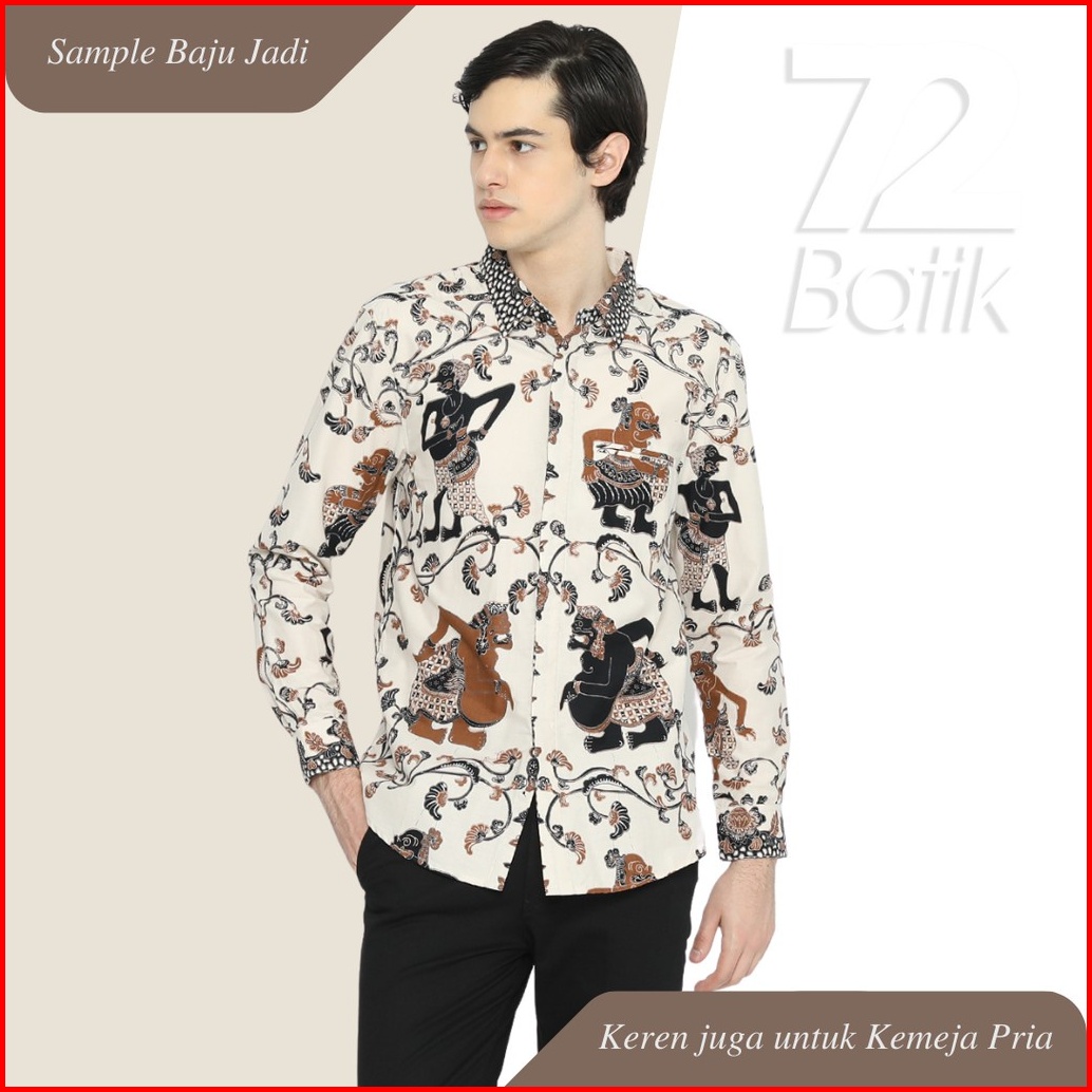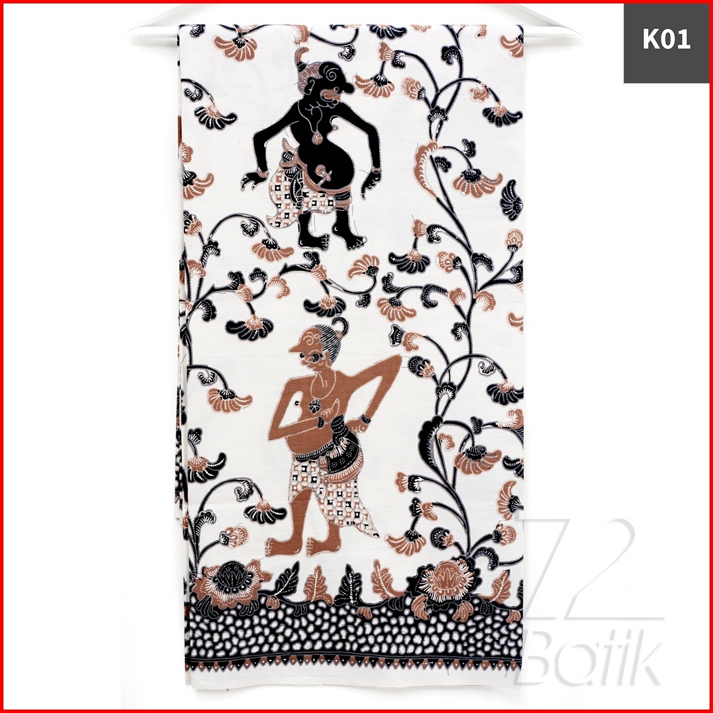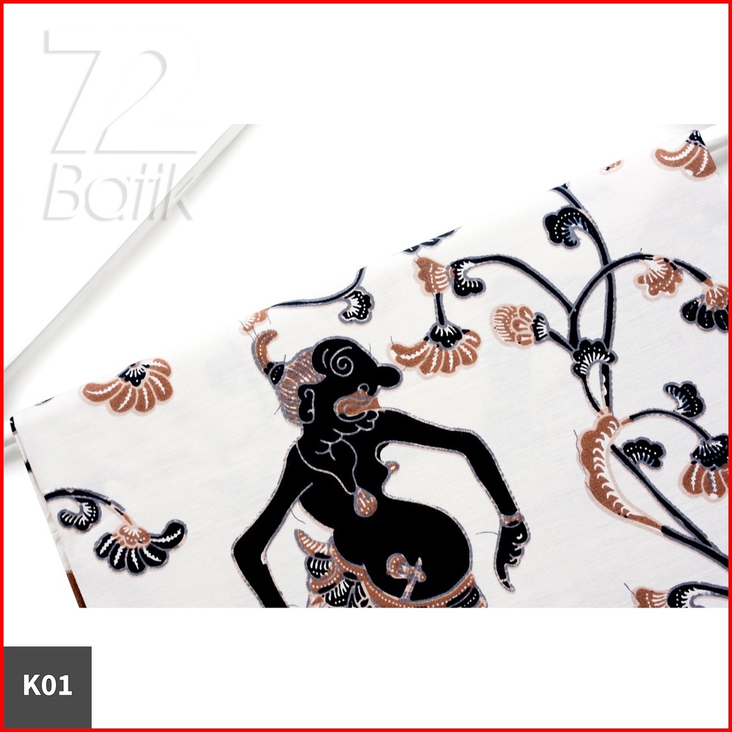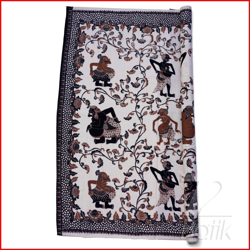 Kain Batik Premium Bahan Katun Motif Wayang Warna Putih Tulang Cream Coklat Hitam 723452 Cap 72 Jarik Jarit Samping Keba