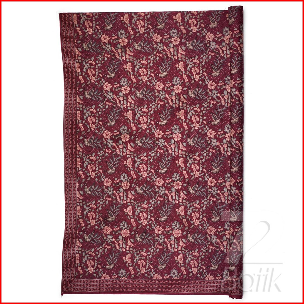 Kain Batik Premium Bahan Katun Motif Kembang Warna Merah Burgundy Ungu Mocha Mousse 724629 Cap 72 Jarik Jarit Samping Ke