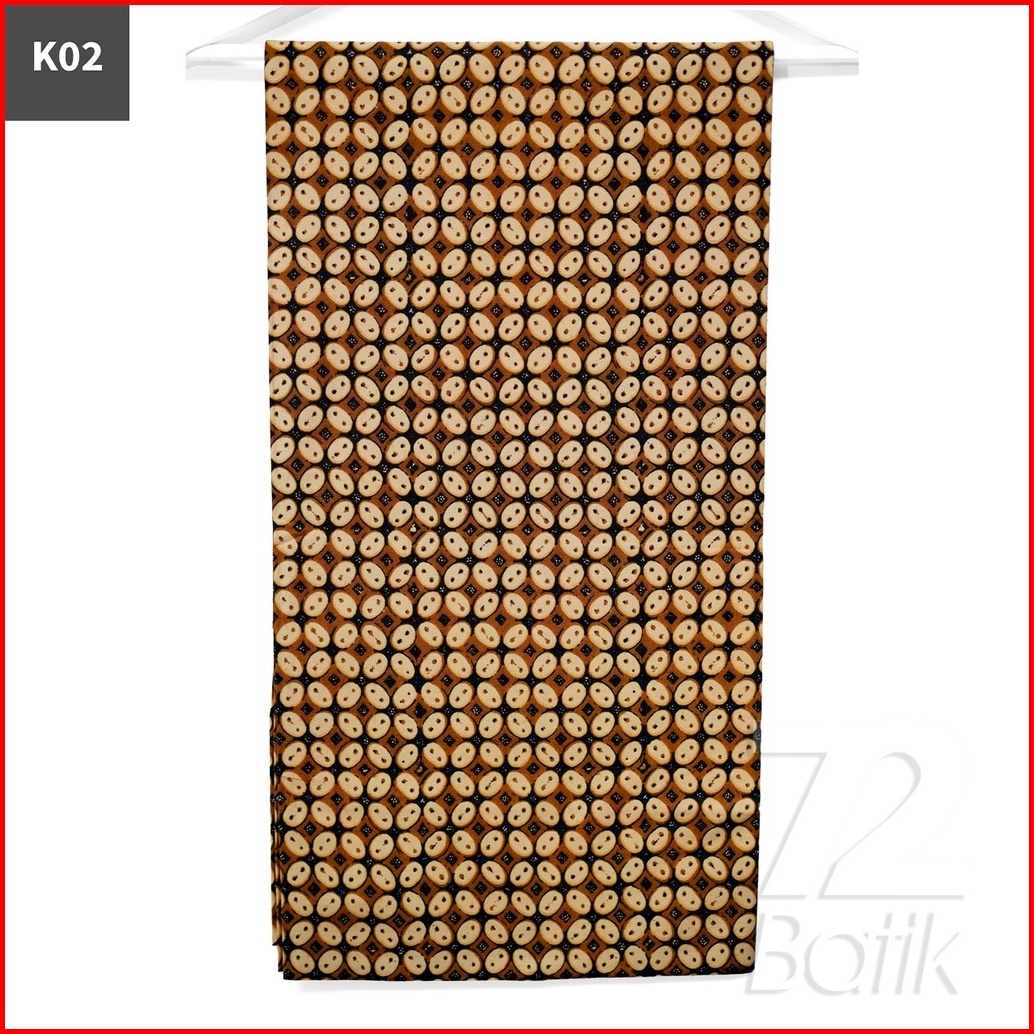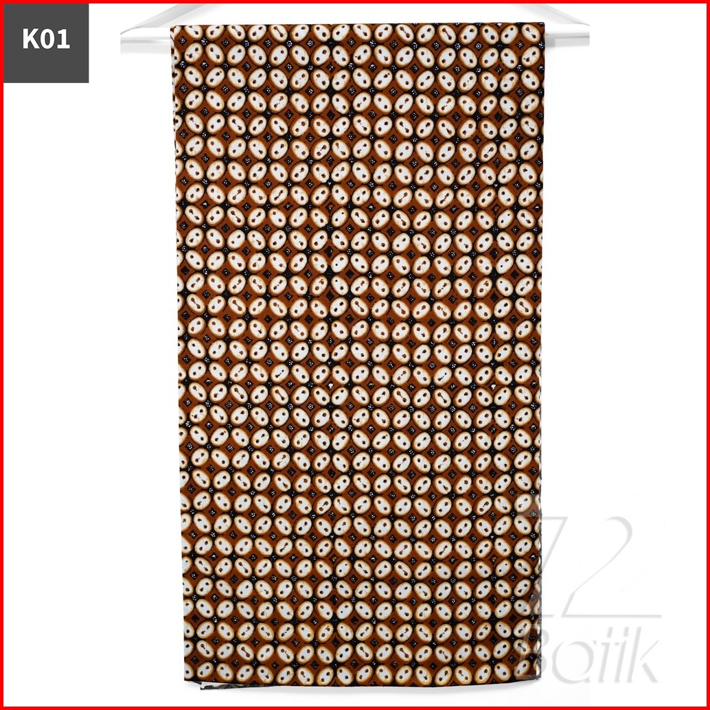 Kain Batik Premium Bahan Katun Motif Kawung Warna Coklat Hitam Putih 721509 Cap 72 Jarik Jarit Samping Kebat Panjang Bat