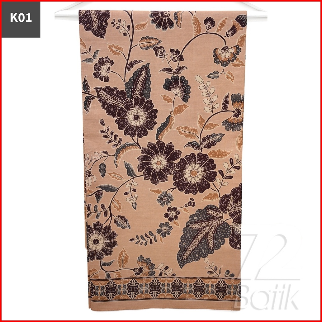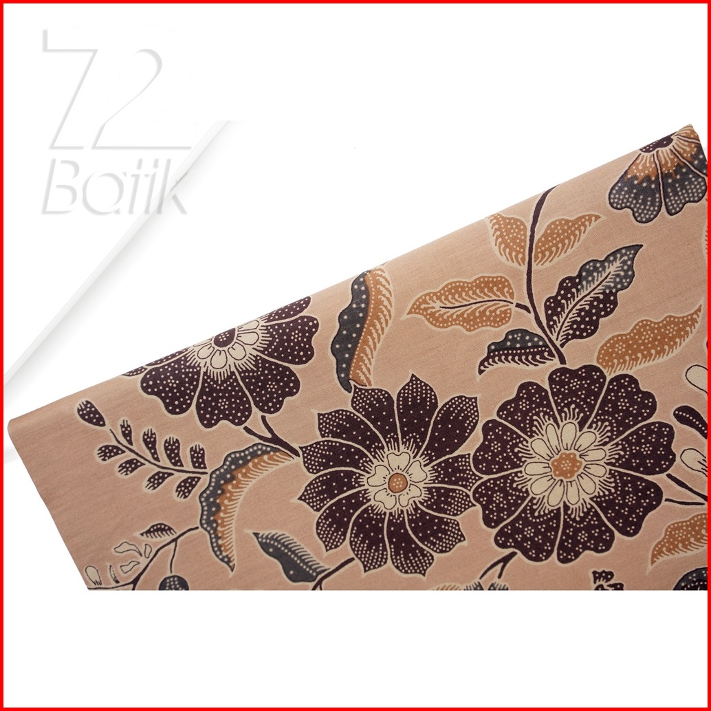 Kain Batik Premium Bahan Katun Motif Kembang Sari Warna Cream Earthy Brown Mocha Mousse 721184 Cap 72 Jarik Jarit Sampin