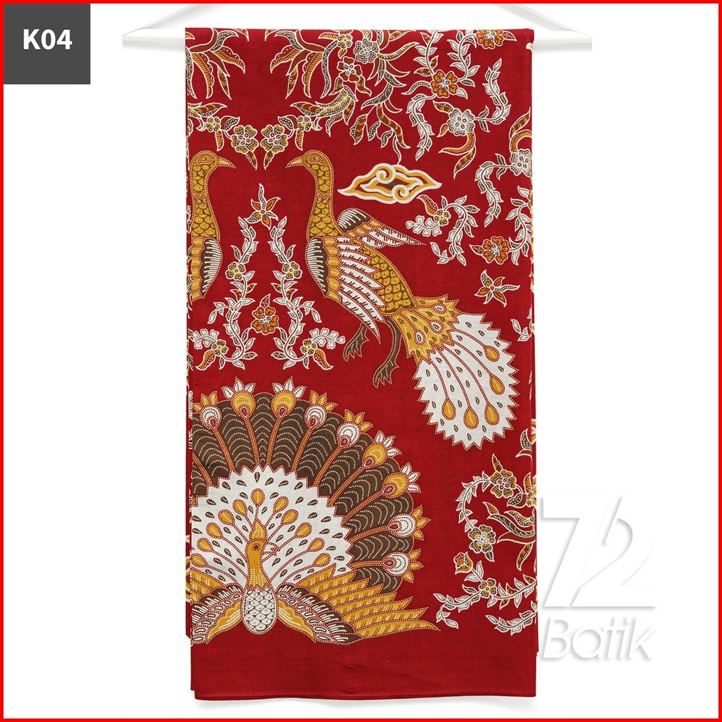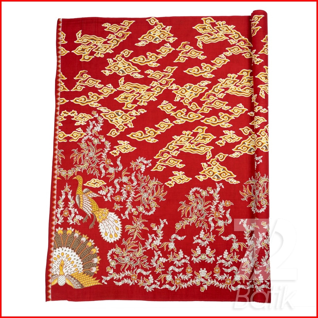 Kain Batik Premium Bahan Katun Motif Merak Merah 722688 Cap 72 Jarik Jarit Samping Kebat Panjang Batik Katun Modern Prem