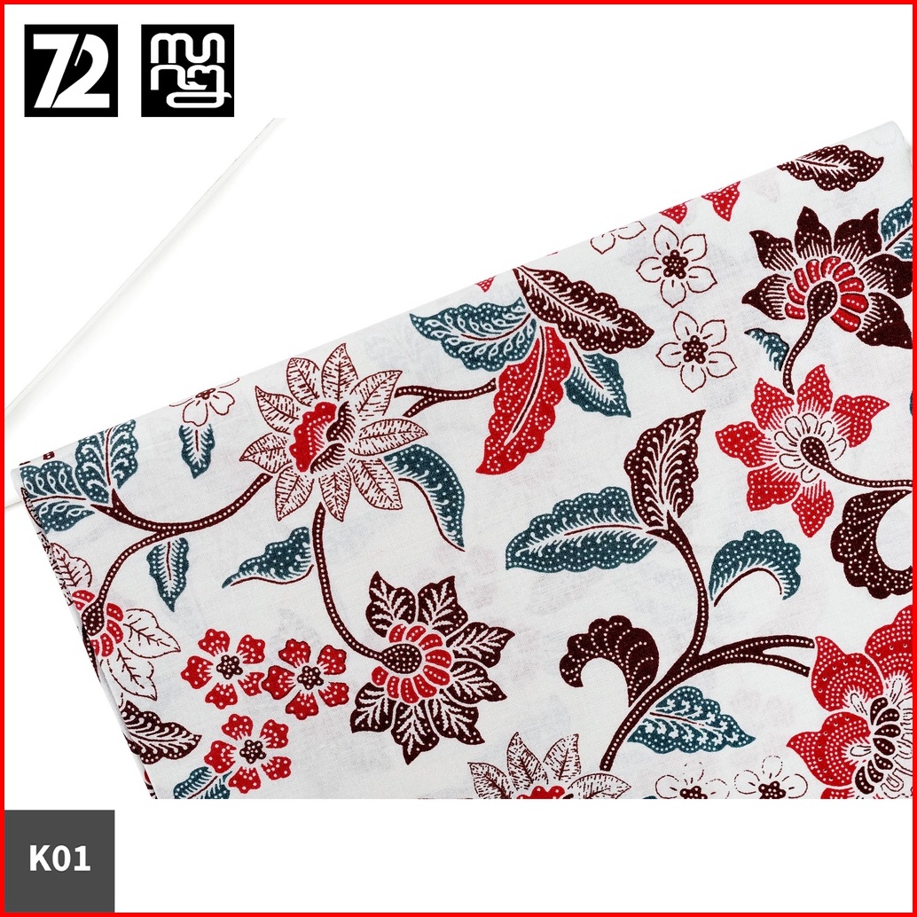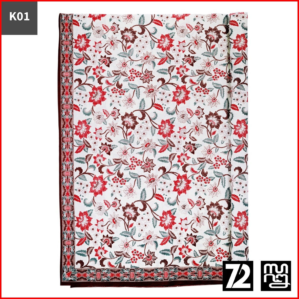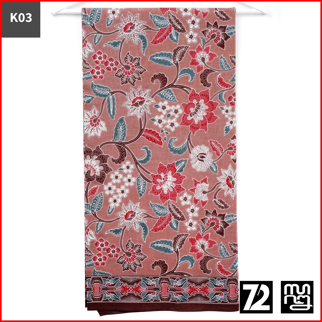 Kain Batik Katun Premium Motif Kembang Warna Putih Merah Burgundy Muda Mocha Mousse 723933 Cap 72 Jarik Jarit Samping Ke