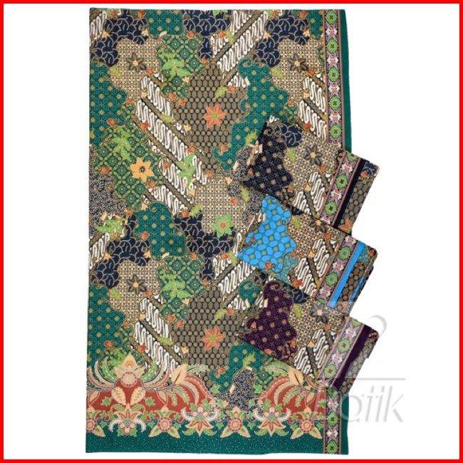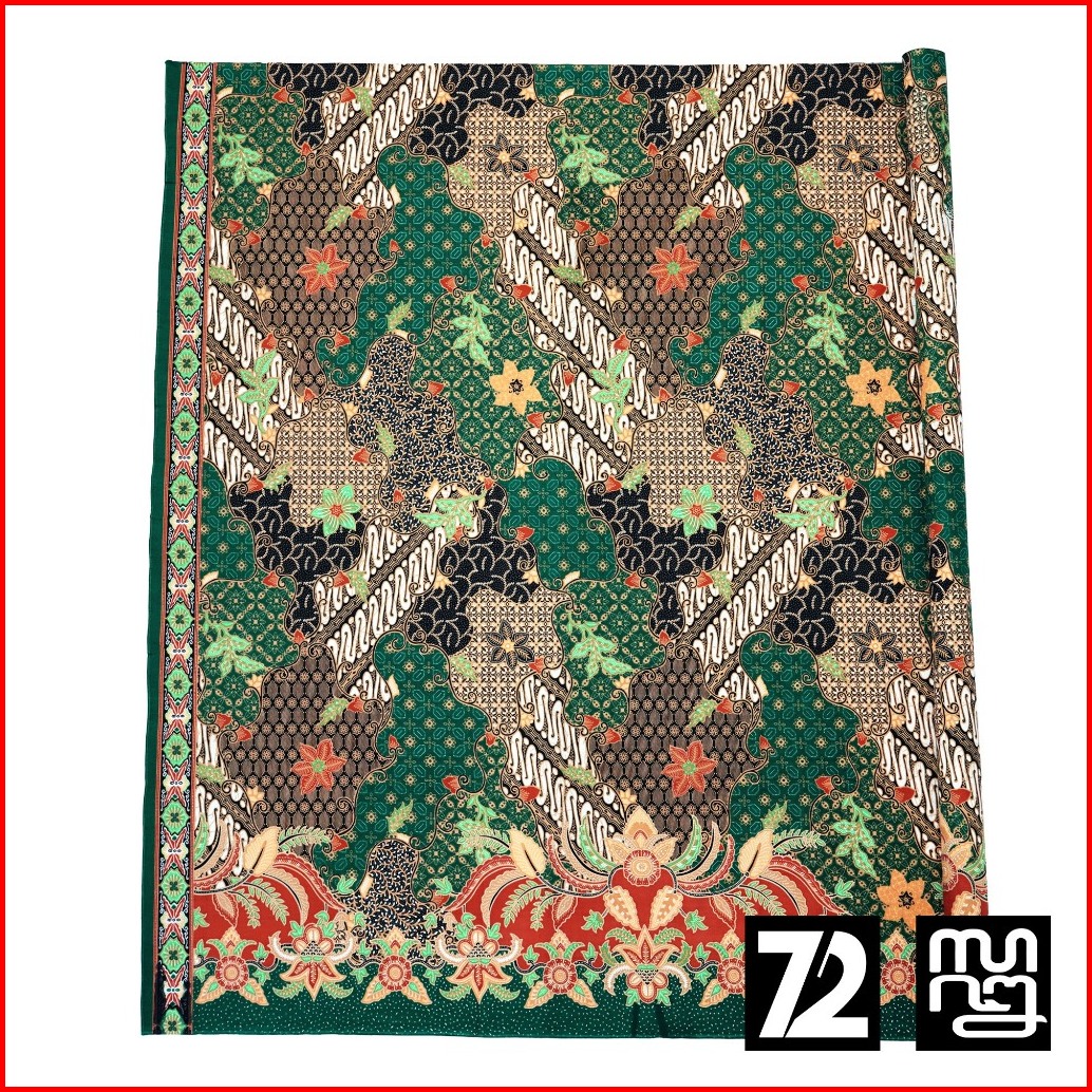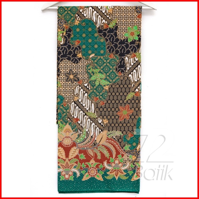 Kain Panjang Batik Bahan Katun Motif Sekar Jagad Warna Hijau Terakota Sunbeam Yellow 726817 Cap 72 Jarik Jarit Samping K