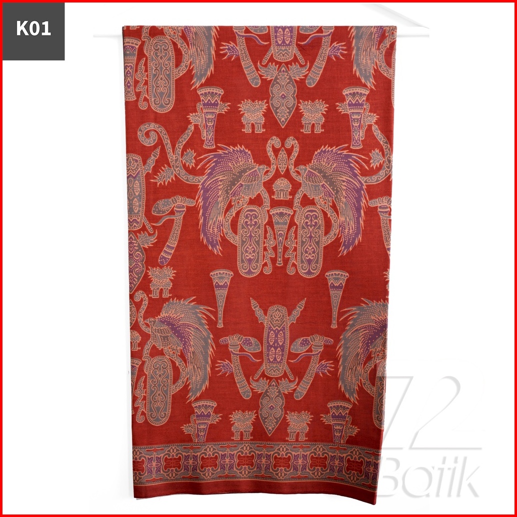 Kain Batik Premium Bahan Katun Motif Adat Warna Hitam Terakota 722373 Cap 72 Jarik Jarit Samping Kebat Panjang Batik Kat