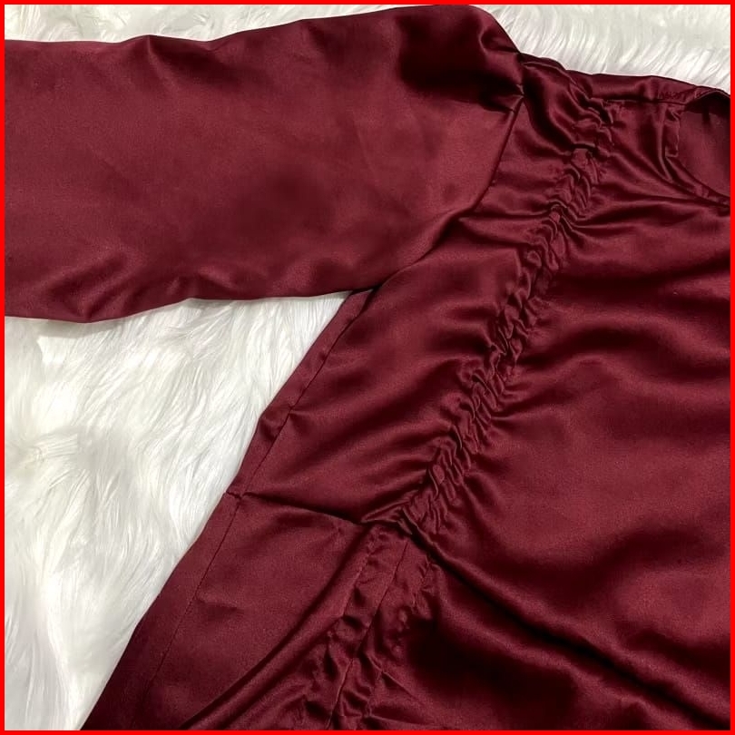 New Arrival Dress Satin Korean Dress Lebaran Kondangan Lengan Panjang Dress Satin Muslim Hijab Friendly Velvet Terbaru D